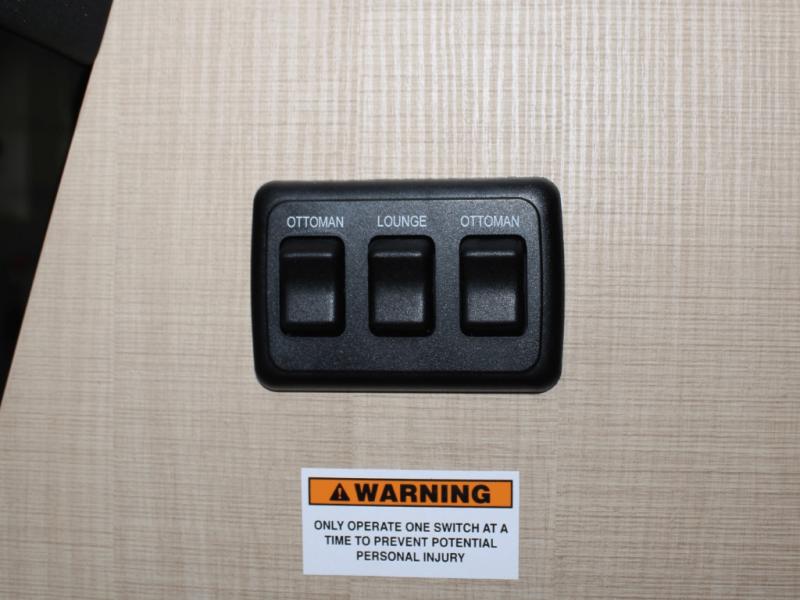 Step inside and feel the difference. The interior reflects Tommy Bahama’s tropical elegance, with rich textures, soothing colors, and upscale finishes that create an atmosphere of effortless relaxation. The Ultraleather seating, custom-embroidered Tommy Bahama accents, and Corian countertops evoke the comfort of a beachfront resort.