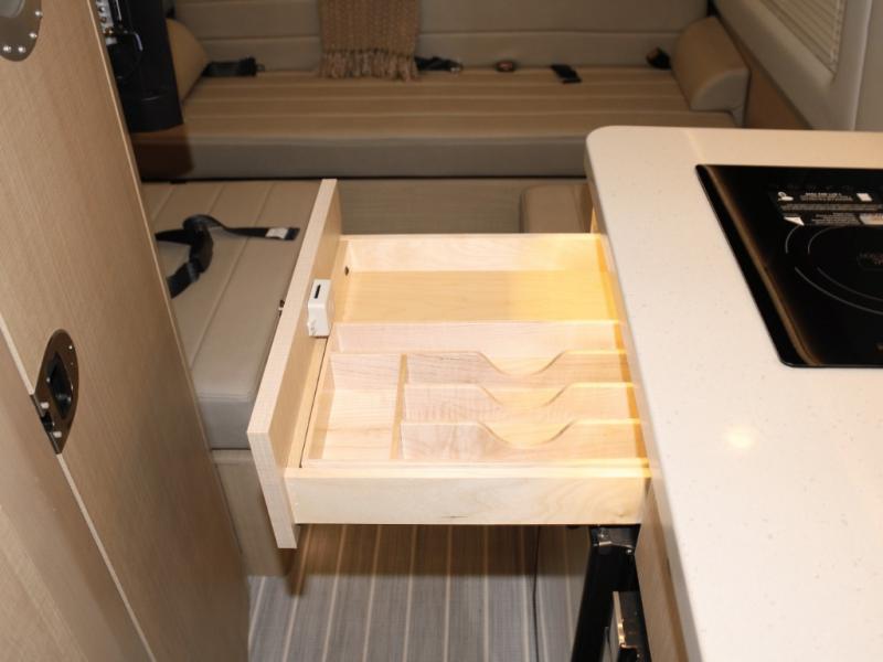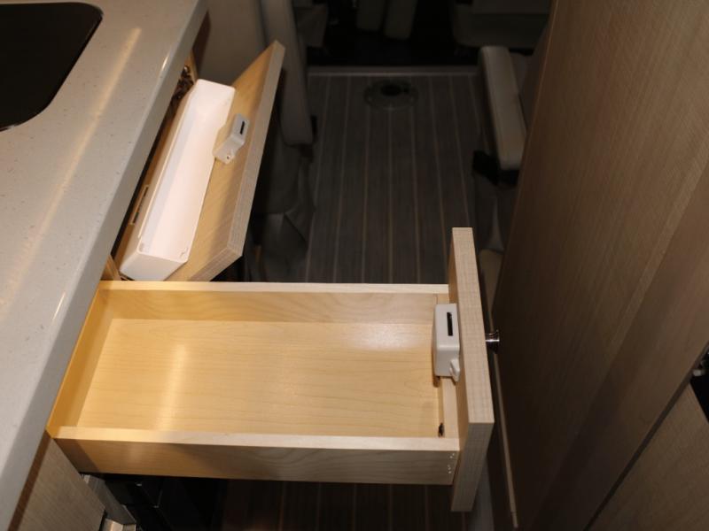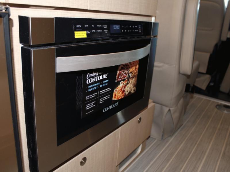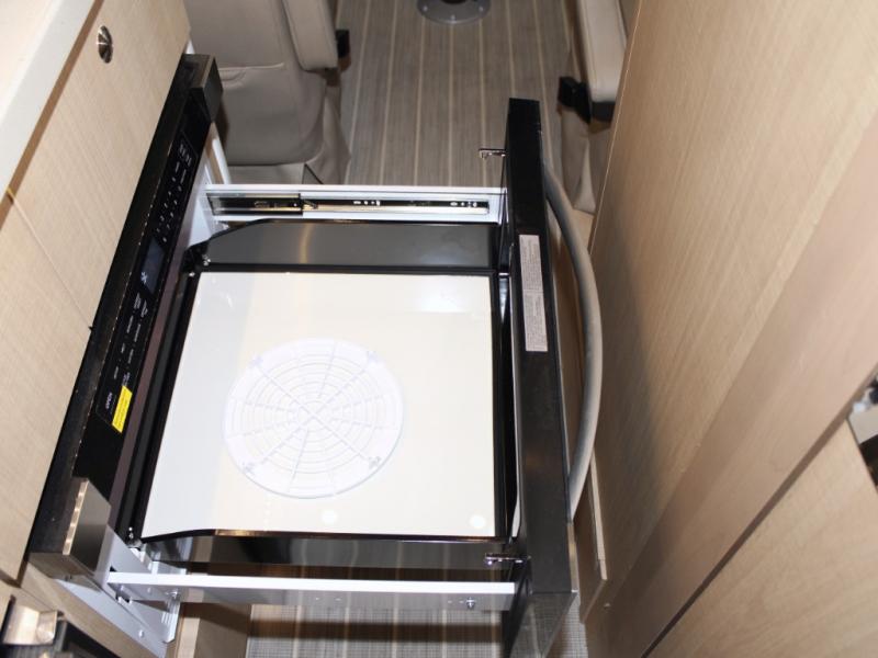 From a quick weekend escape to cross-country travel, the Interstate 24GL Tommy Bahama is equipped with everything you need for comfort on the go. The well-appointed kitchen features a single-burner induction cooktop, drawer-style microwave, and 3.1 cu. ft. refrigerator beneath sleek Corian surfaces.