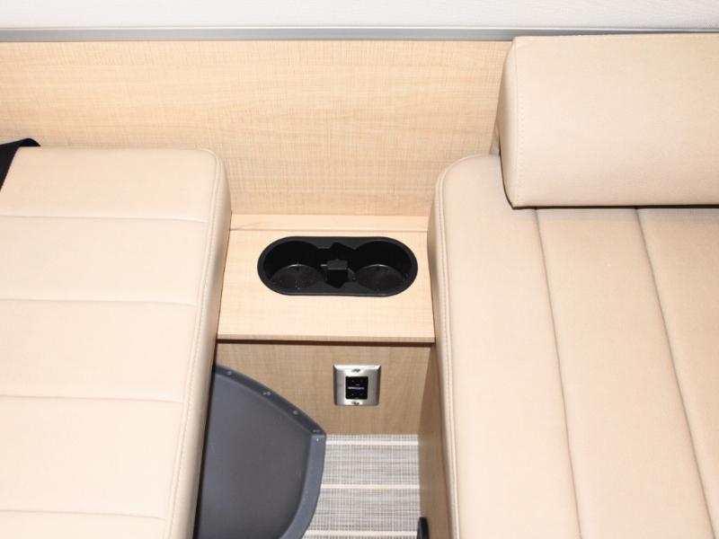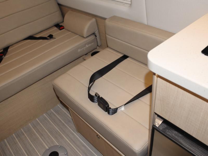 The rear power sofa easily converts into a comfortable sleeping area, while the swivel captain’s chairs and dual side seats surround a removable table—perfect for sharing meals, sipping coffee, or enjoying a sunset cocktail.
