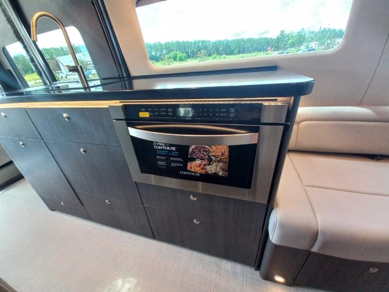 The Airstream Interstate 24GT Class B diesel motorhome offers comfort, performance and safety with the Mercedes-Benz Sprinter 3500 extended chassis, the 3.0L V6 turbo diesel engine, BlueTEC SCR technology, and Adaptive Electronic Stability Program. Also included: active blind spot, brake, driver attention, rear cross traffic assist, plus more safety features giving you peace of mind on the road. More standout features include the power-sliding side door for ease in entering and exiting with a built-in screen door to allow airflow when parked, storage cubbies with USB charging ports, and a super comfortable Ultraleather sofa that offers both seating and sleeping space. You will also appreciate the touch screen/touch pad electronic controls with an Energy Management system, and a 400 watt solar system for off-grid camping