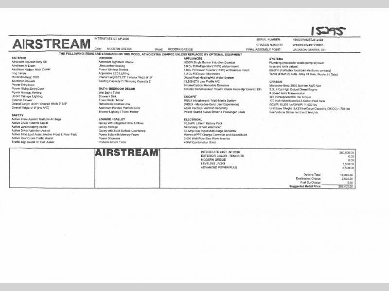 Airstream Interstate 24GT Class B diesel motorhome Std. Model highlights: