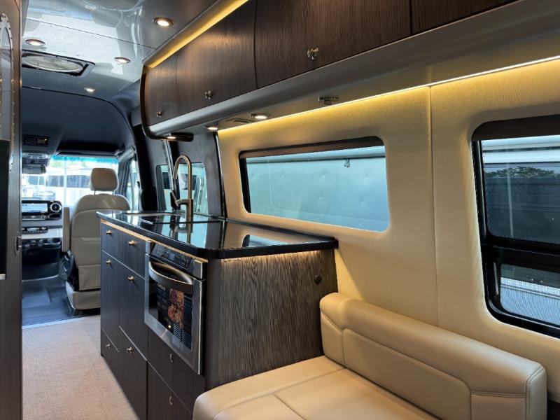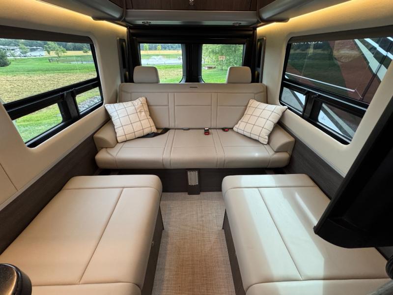 The Airstream Interstate 24GT Class B diesel motorhome offers comfort, performance and safety with the Mercedes-Benz Sprinter 3500 extended chassis, the 3.0L V6 turbo diesel engine, BlueTEC SCR technology, and Adaptive Electronic Stability Program. Also included: active blind spot, brake, driver attention, rear cross traffic assist, plus more safety features giving you peace of mind on the road. More standout features include the power-sliding side door for ease in entering and exiting with a built-in screen door to allow airflow when parked, storage cubbies with USB charging ports, and a super comfortable Ultraleather sofa that offers both seating and sleeping space. You will also appreciate the touch screen/touch pad electronic controls with an Energy Management system, and a 400 watt solar system for off-grid camping