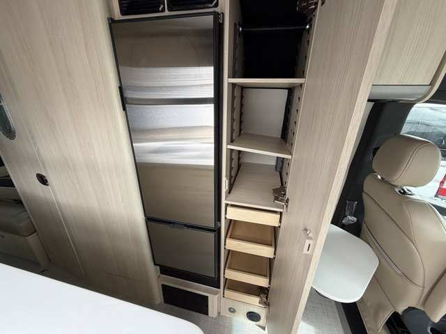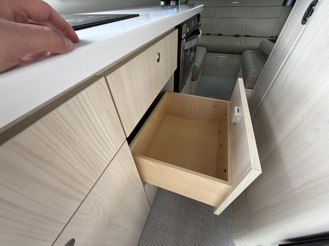 Fold-Out Sofa Bed, Drop-In Table, Wardrobe, Refrigerator/Microwave, Wet Bath, Sink, Flip Shelf, 2 Burner Cook Top, and More.