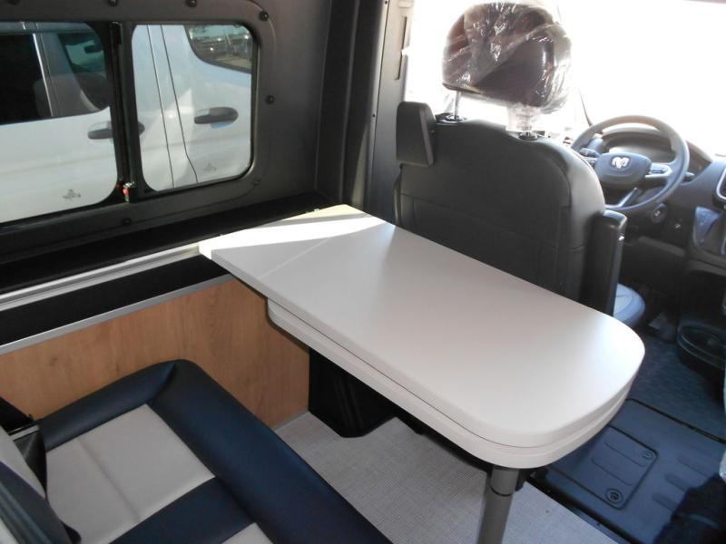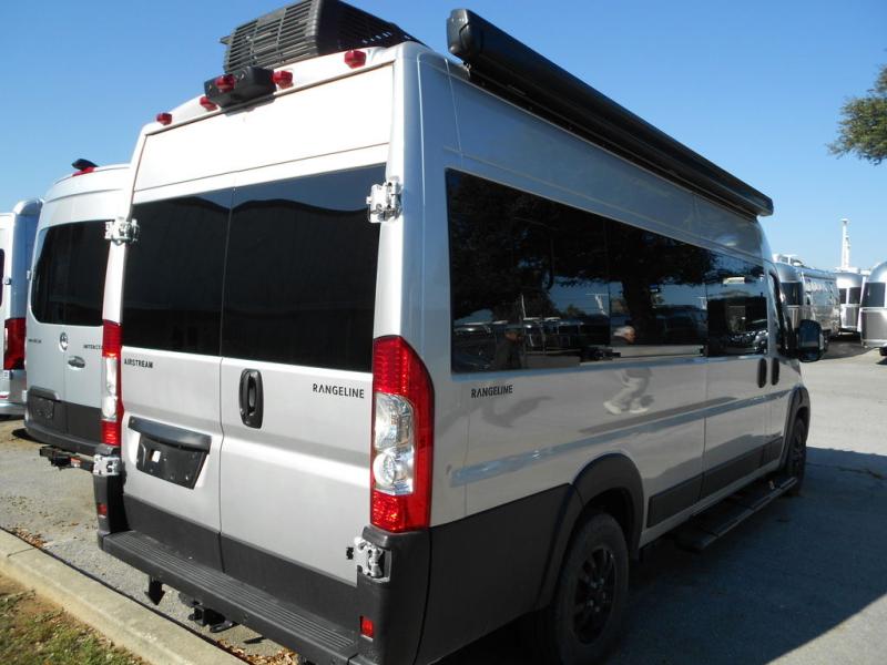 The Airstream Rangeline offers complete comfort and flexibility with great living spaces, flexible storage throughout, and all the amenities you need to enjoy travel. Its sleek design with painted grille, two interior color choices with Warm River Oak cabinets and drawers, and gray laminate countertops allows you to travel in style. The Ram ProMaster 3500 chassis offers front-wheel drive and 276 horsepower, with an efficient gas-powered heat and hot water system plus SumoSprings and SuperSprings for an overall better driving experience. Rear storage includes MOLLE panels on the rear doors to hang all your gear, and space under the bed for even more cargo. The optional pop-top roof has three screen windows and another bed, expanding sleeping capacity to four people.