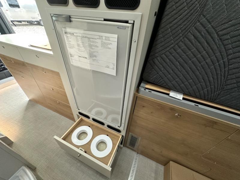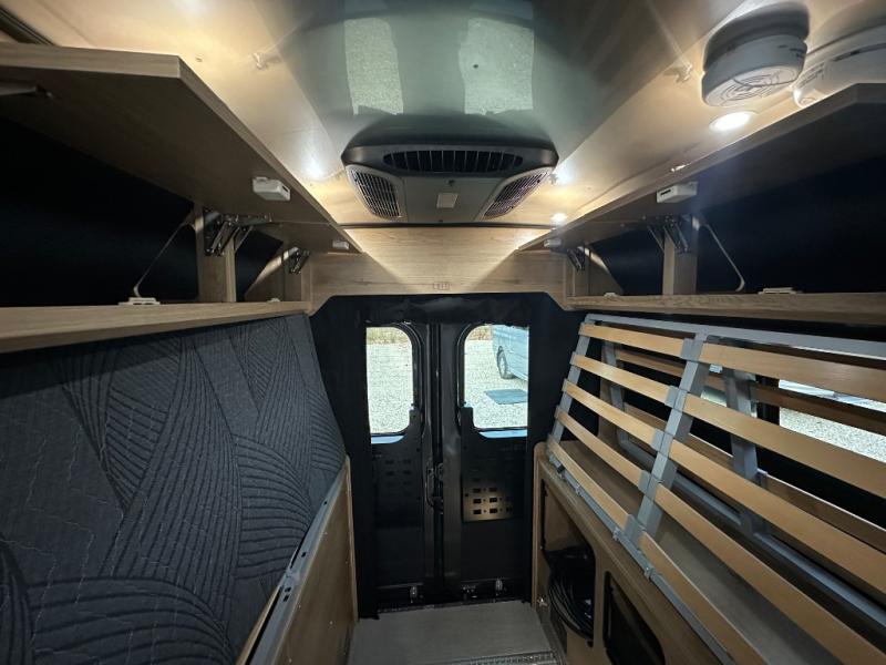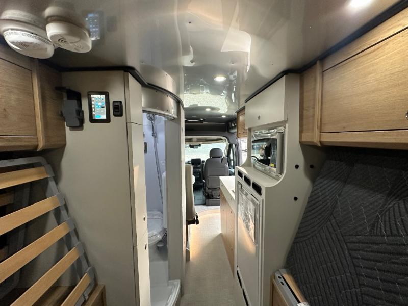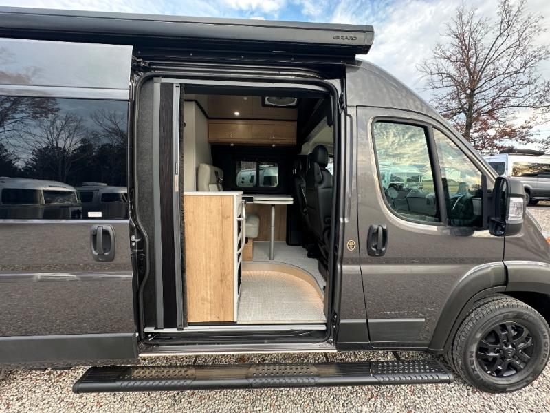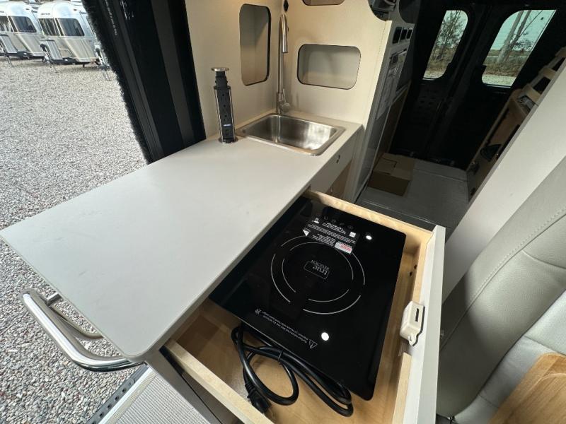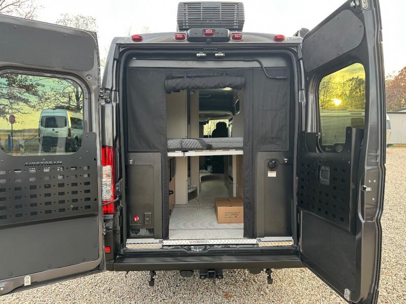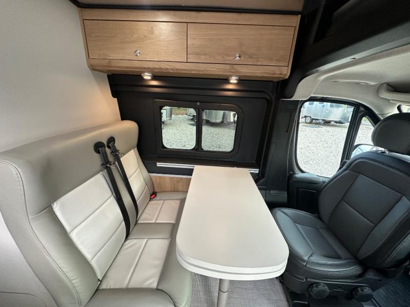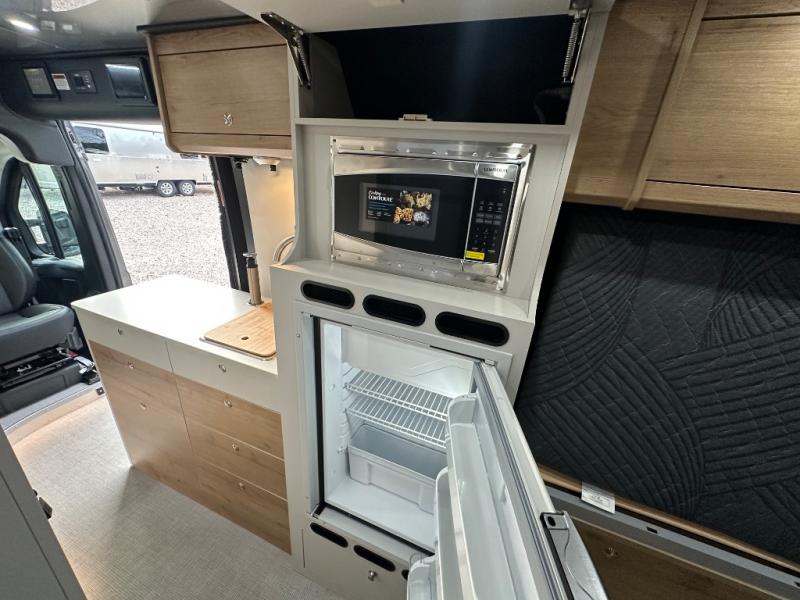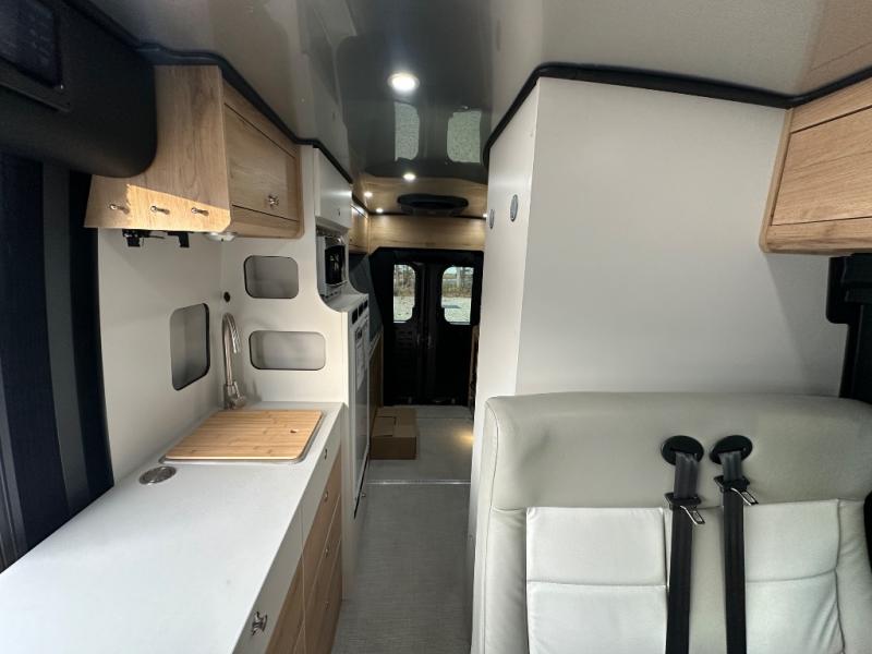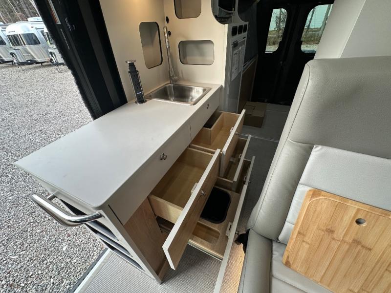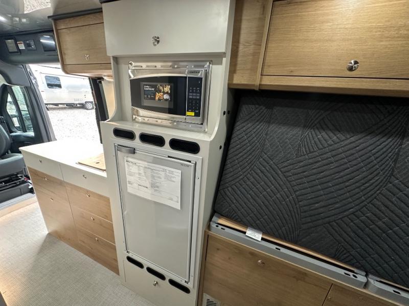 The Airstream Rangeline offers complete comfort and flexibility with great living spaces, flexible storage throughout, and all the amenities you need to enjoy travel. Its sleek design with painted grille, two interior color choices with Warm River Oak cabinets and drawers, and gray laminate countertops allows you to travel in style. The Ram ProMaster 3500 chassis offers front-wheel drive and 276 horsepower, with an efficient gas-powered heat and hot water system plus SumoSprings and SuperSprings for an overall better driving experience. Rear storage includes MOLLE panels on the rear doors to hang all your gear, and space under the bed for even more cargo.