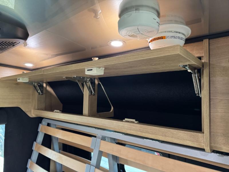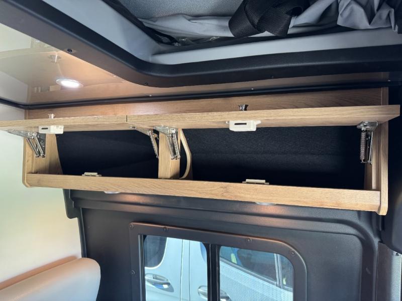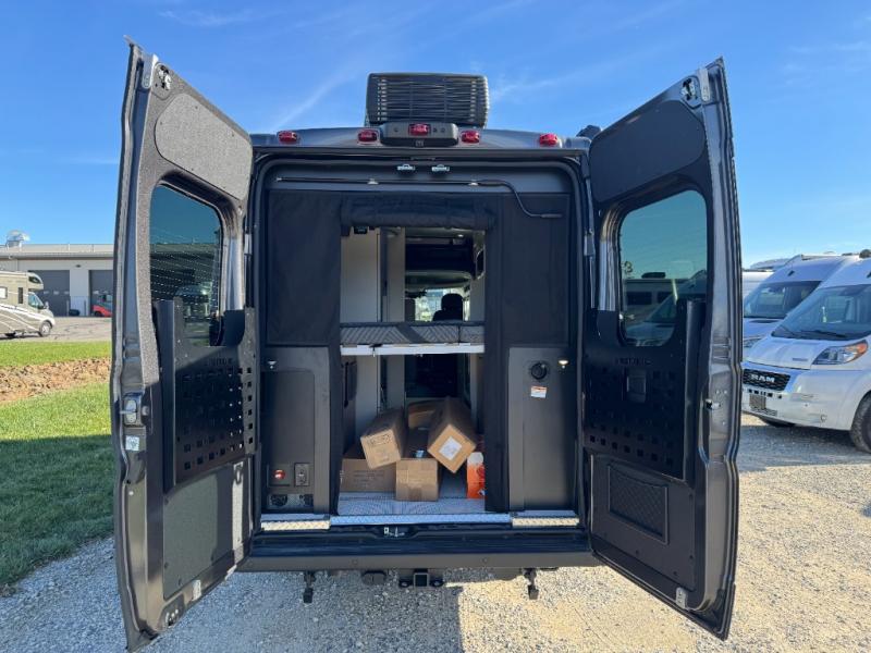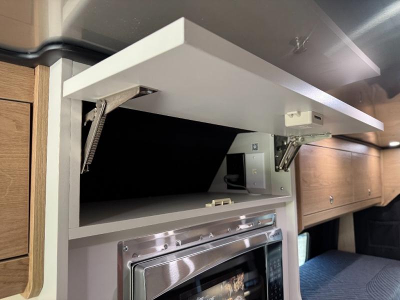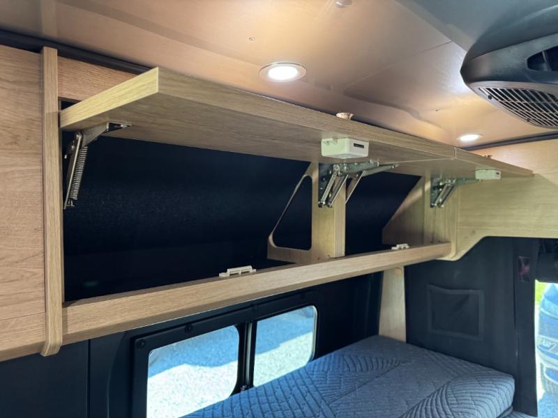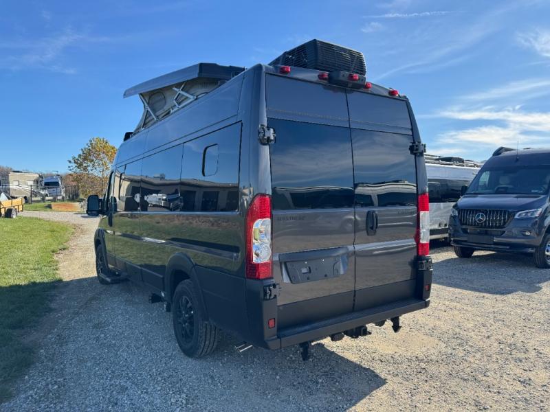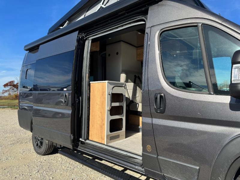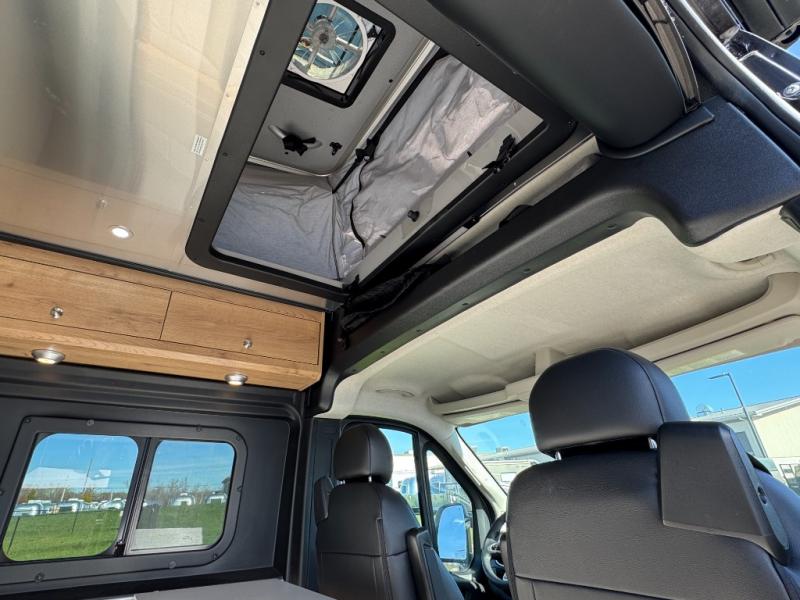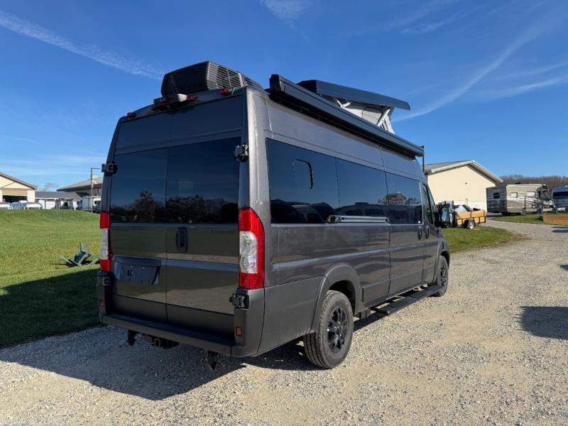 The Airstream Rangeline offers complete comfort and flexibility with great living spaces, flexible storage throughout, and all the amenities you need to enjoy travel. Its sleek design with painted grille, two interior color choices with Warm River Oak cabinets and drawers, and gray laminate countertops allows you to travel in style. The Ram ProMaster 3500 chassis offers front-wheel drive and 276 horsepower, with an efficient gas-powered heat and hot water system plus SumoSprings and SuperSprings for an overall better driving experience. Rear storage includes MOLLE panels on the rear doors to hang all your gear, and space under the bed for even more cargo. The optional pop-top roof has three screen windows and another bed, expanding sleeping capacity to four people.