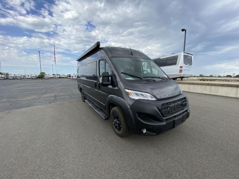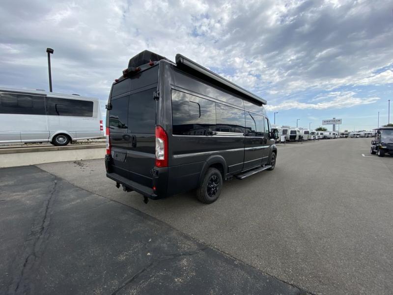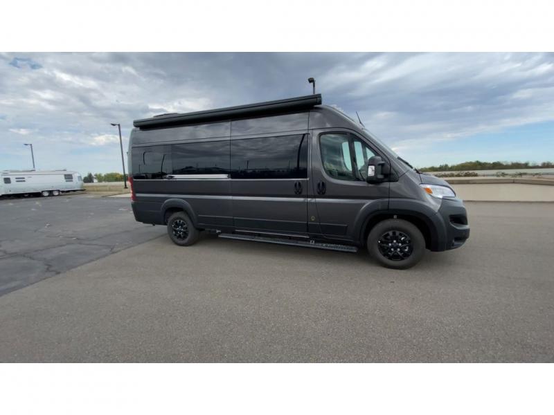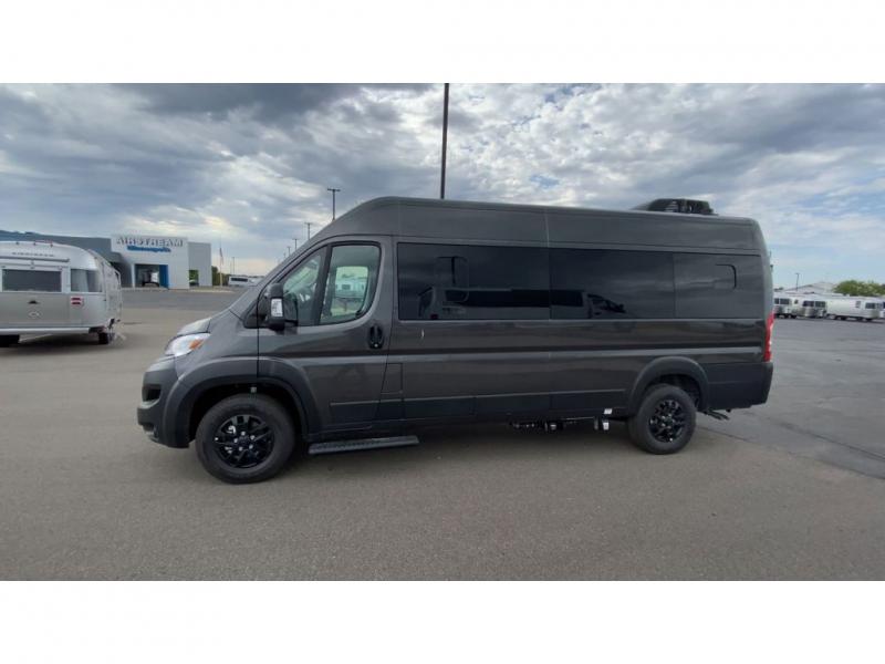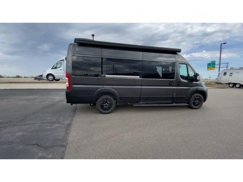 The Airstream Rangeline offers complete comfort and flexibility with great living spaces, flexible storage throughout, and all the amenities you need to enjoy travel. Its sleek design with painted grille, two interior color choices with Warm River Oak cabinets and drawers, and gray laminate countertops allows you to travel in style. The Ram ProMaster 3500 chassis offers front-wheel drive and 276 horsepower, with an efficient gas-powered heat and hot water system plus SumoSprings and SuperSprings for an overall better driving experience. Rear storage includes MOLLE panels on the rear doors to hang all your gear, and space under the bed for even more cargo. The optional pop-top roof has three screen windows and another bed, expanding sleeping capacity to four people.