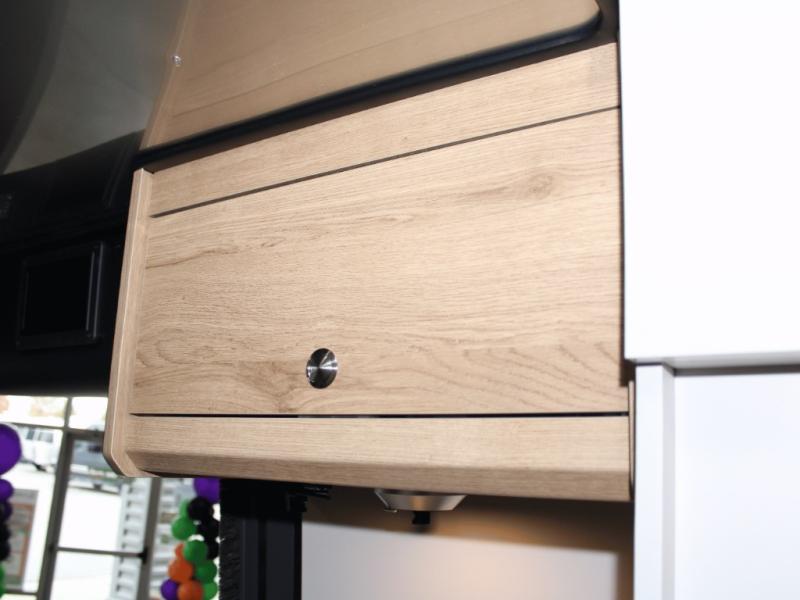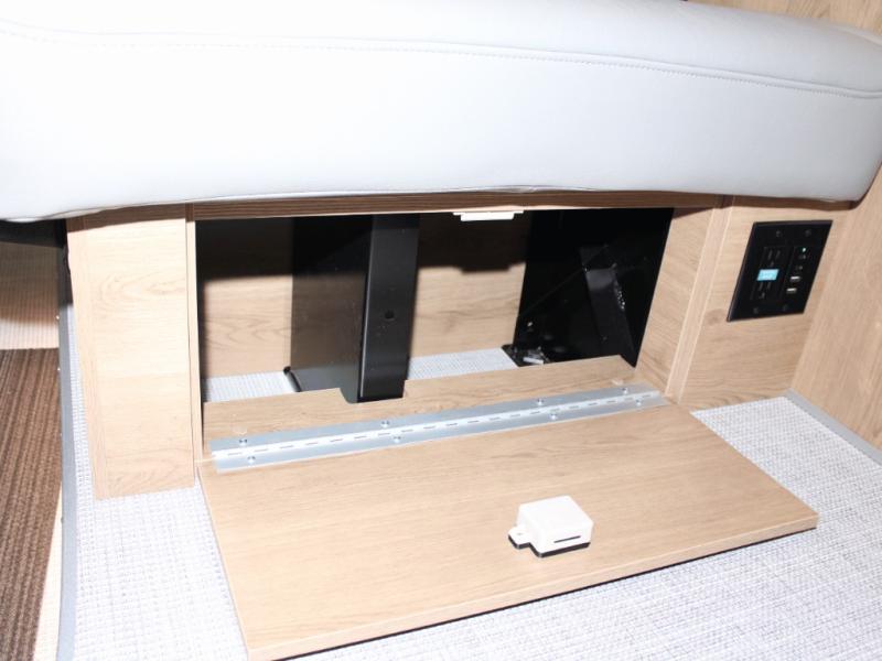 At just the right size for nimble urban maneuvering or open-highway cruising, the Rangeline RGT brings true "home on the road" functionality. Inside, you'll find a beautifully designed living space featuring Warm River Oak cabinetry, sleek gray countertops, and two elegant interior color options that give a residential, high-end feel. The innovative flex bed system folds out easily to create a full-size sleeping area, while the swivel driver and passenger seats and flex table system with bench seating provide a welcoming space for meals, work, or friendly conversation. The removable table adapts to your needs — extend it, rotate it, or remove it entirely to open up space.