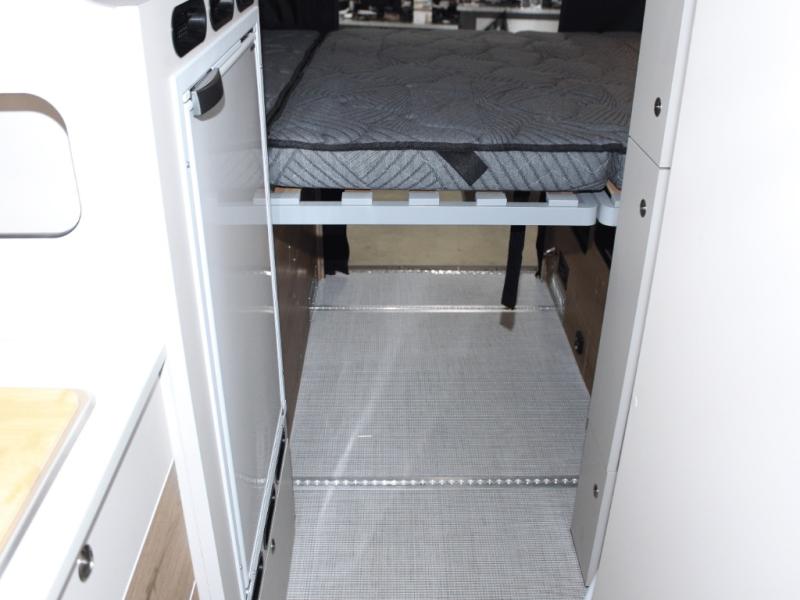 Cooking on the go is a breeze with a fully equipped galley kitchen, and the wet bath offers convenience and cleanliness wherever you are. With ample rear storage, including MOLLE panels and under-bed cargo space, you’ll have room for gear, groceries, and adventure essentials. Want to bring more people? Add the optional pop-top roof with an additional bed and three screen windows for light, ventilation, and sleeping space for up to four.