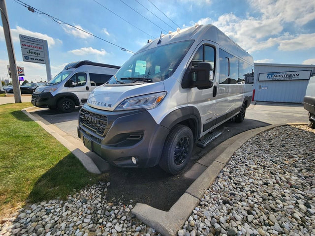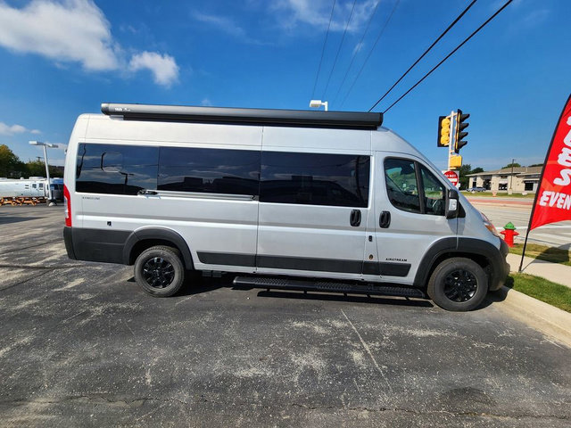 The Airstream Rangeline offers complete comfort and flexibility with great living spaces, flexible storage throughout, and all the amenities you need to enjoy travel. Its sleek design with painted grille, two interior color choices with Warm River Oak cabinets and drawers, and gray laminate countertops allows you to travel in style. The Ram ProMaster 3500 chassis offers front-wheel drive and 276 horsepower, with an efficient gas-powered heat and hot water system plus SumoSprings and SuperSprings for an overall better driving experience. Rear storage includes MOLLE panels on the rear doors to hang all your gear, and space under the bed for even more cargo. The optional pop-top roof has three screen windows and another bed, expanding sleeping capacity to four people.