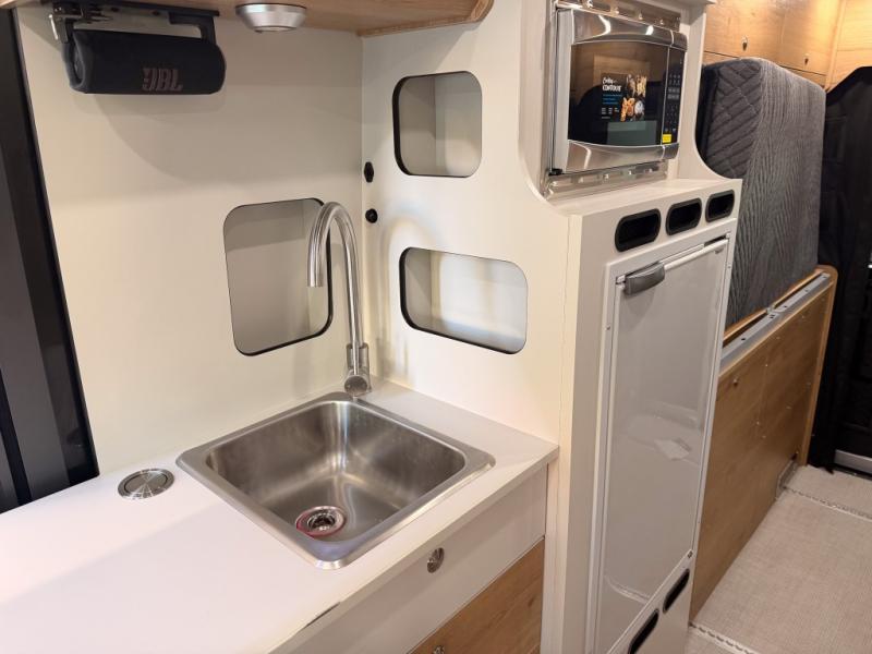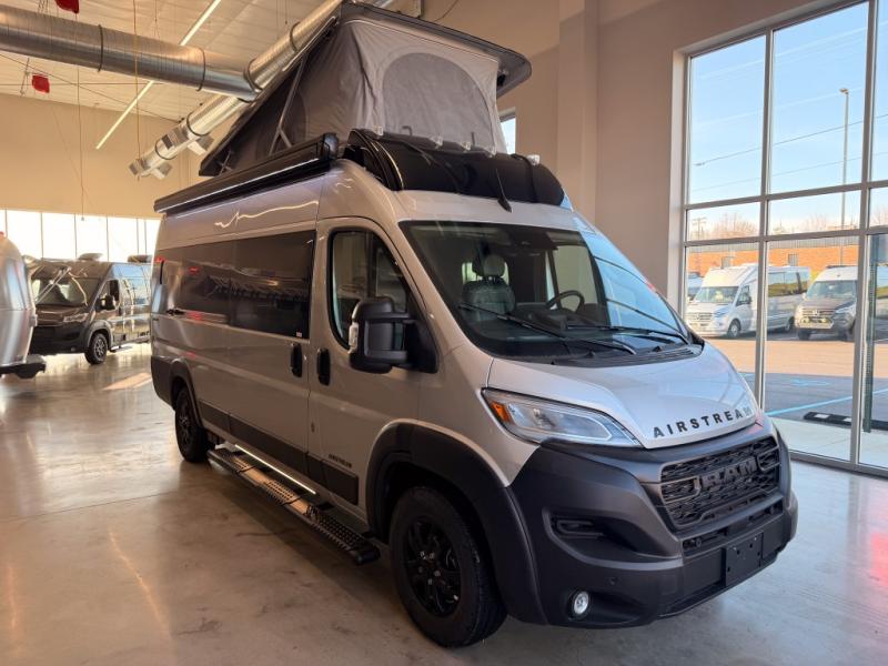 The Airstream Rangeline offers complete comfort and flexibility with great living spaces, flexible storage throughout, and all the amenities you need to enjoy travel. Its sleek design with painted grille, two interior color choices with Warm River Oak cabinets and drawers, and gray laminate countertops allows you to travel in style. The Ram ProMaster 3500 chassis offers front-wheel drive and 276 horsepower, with an efficient gas-powered heat and hot water system plus SumoSprings and SuperSprings for an overall better driving experience. Rear storage includes MOLLE panels on the rear doors to hang all your gear, and space under the bed for even more cargo. The optional pop-top roof has three screen windows and another bed, expanding sleeping capacity to four people.