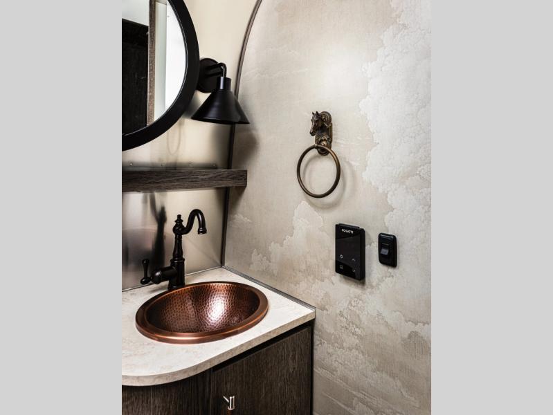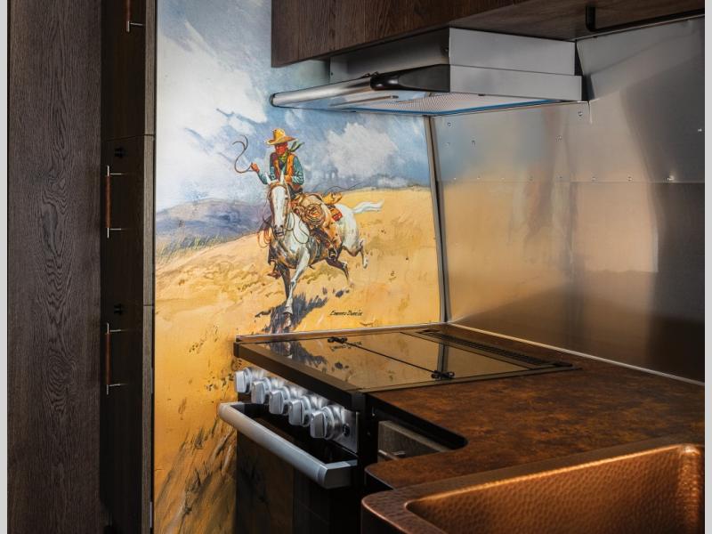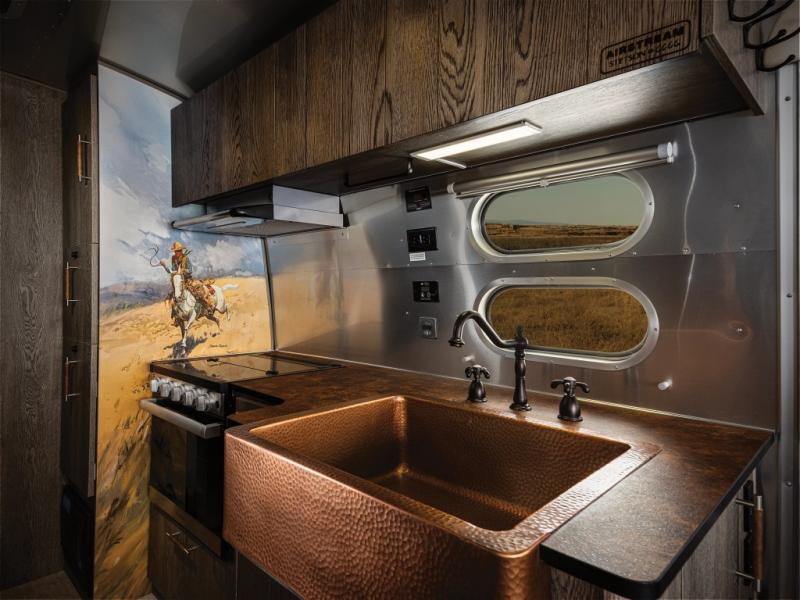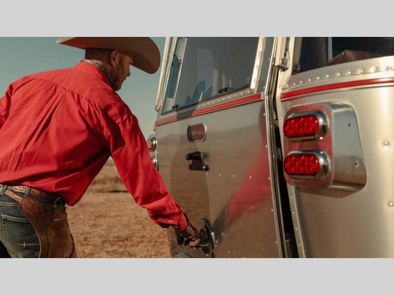 Airstream has collaborated with the hatmakers of Stetson and the Four Sixes Ranch in Texas to bring you the Stetson + 6666 Special Edition travel trailer! You will find Western heritage and modern luxury throughout with genuine leather, convenient hat racks, premium finishes, and handcrafted cabinetry. You will love the rear hatch that opens to give you fresh air and wide-open views of the pasture, and there is a sliding pull-down screen to keep bugs out in the evening. The galley and lounge walls feature custom laminate artwork drawn from Stetson's archive, and the leather cabinet hardware adds subtle Western style you are sure to enjoy. Outside, you'll find a 300-watt solar charging system, a backup camera, insulated and heated tanks, and a SmartPlug 50 Amp power cord to name just a few conveniences!