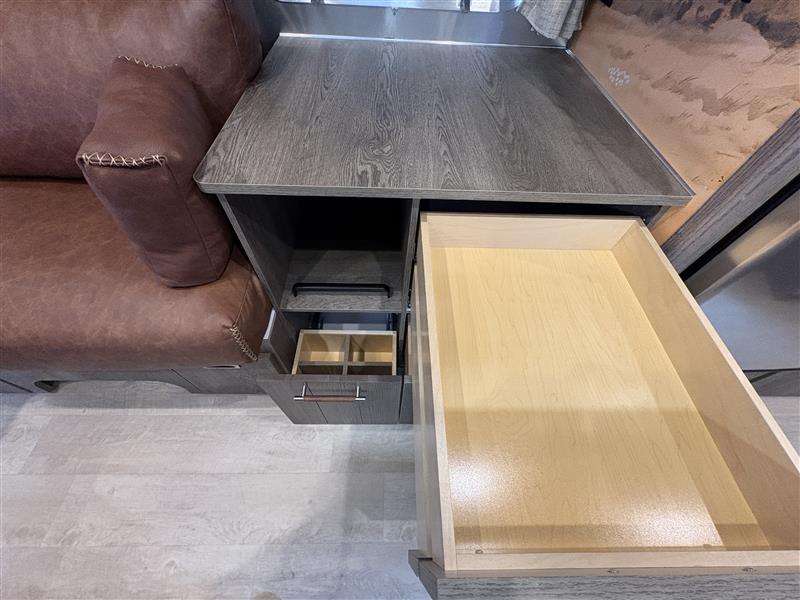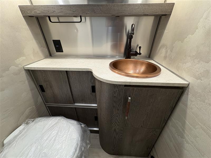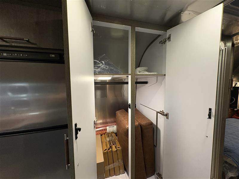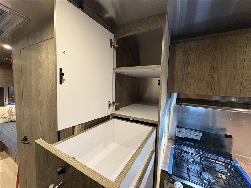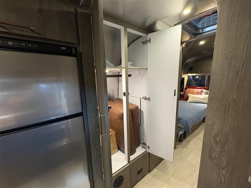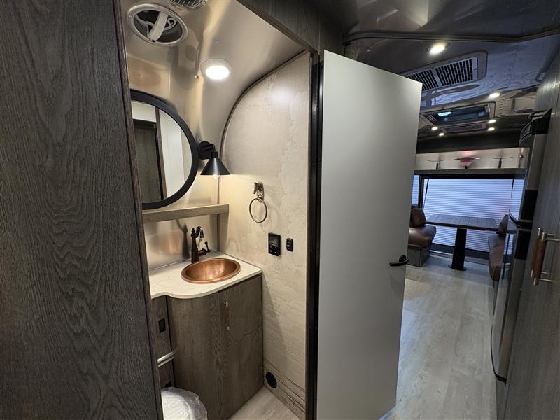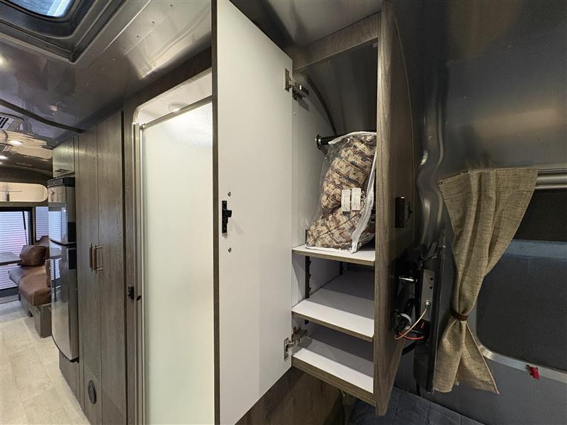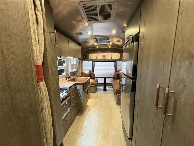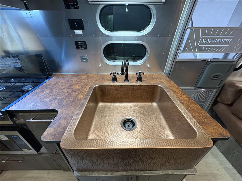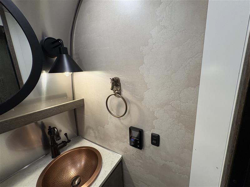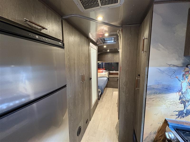 Airstream has collaborated with the hatmakers of Stetson and the Four Sixes Ranch in Texas to bring you the Stetson + 6666 Special Edition travel trailer! You will find Western heritage and modern luxury throughout with genuine leather, convenient hat racks, premium finishes, and handcrafted cabinetry. You will love the rear hatch that opens to give you fresh air and wide-open views of the pasture, and there is a sliding pull-down screen to keep bugs out in the evening. The galley and lounge walls feature custom laminate artwork drawn from Stetson's archive, and the leather cabinet hardware adds subtle Western style you are sure to enjoy. Outside, you'll find a 300-watt solar charging system, a backup camera, insulated and heated tanks, and a SmartPlug 50 Amp power cord to name just a few conveniences!