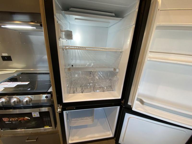 This travel trailer has a layout that feels spacious while still offering privacy! The front bedroom has a queen bed with a memory foam mattress and bedspread, panoramic front window, wardrobe, and even a Smart TV. You can choose a dual twin bed option if you would prefer that flexibility. The rear full bath has every amenity you need, including a reeded glass shower door, removable handheld shower head, and a retractable clothesline so you can hang your laundry or bathing suits. At the center of the action are the living room and kitchen, with a U-dinette for comfortable seating. Convert the dinette to additional sleeping space at night if you need. Cook up your meals with the high-end appliances, including a 12V refrigerator, three burner stove, and oven, or you can choose the optional convection microwave.