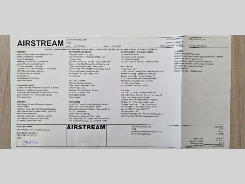 Airstream Trade Wind travel trailer 23FB Twin highlights: