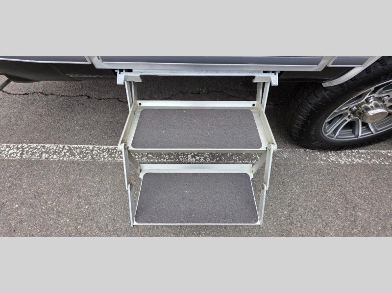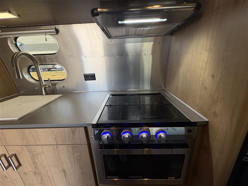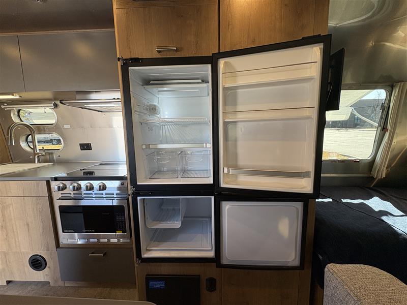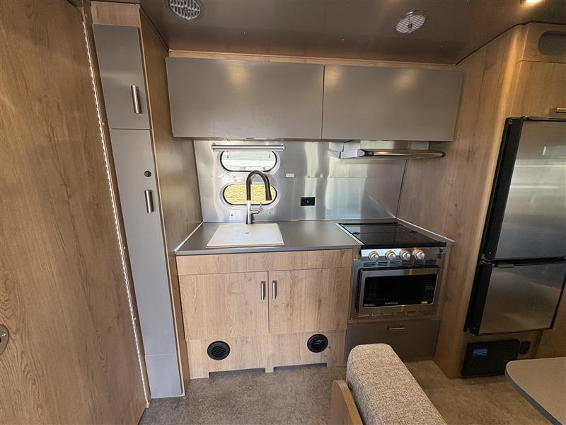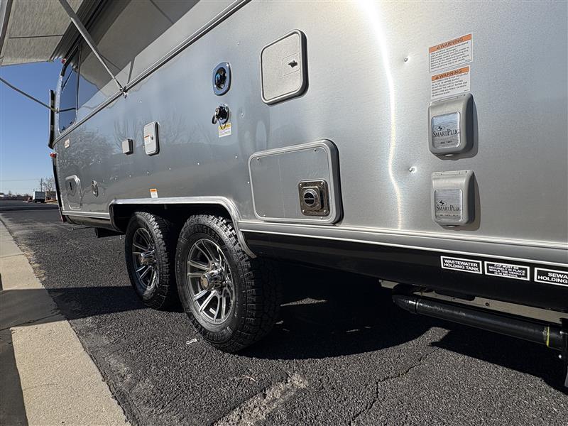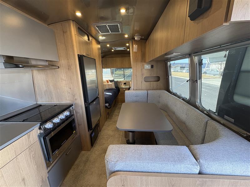 The Trade Wind is Airstream's most powerful travel trailer in its lineup and it's easy to see why! There are roof-mounted solar panels, a full-inverted electrical system, plus a massive internal battery pack. You will love how easy it will be to maneuver roads thanks to the 3" suspension lift kit and rugged Goodyear Wrangler Workhorse tires, plus there is a rear view monitoring system to make parking easier than ever. All the comforts of home are included, like a functional kitchen, onboard bathroom, and plenty of storage for belongings and camp gear. The Smart TV with Bluetooth will provide entertainment on those rainy days, or you can just enjoy the view with panoramic windows!