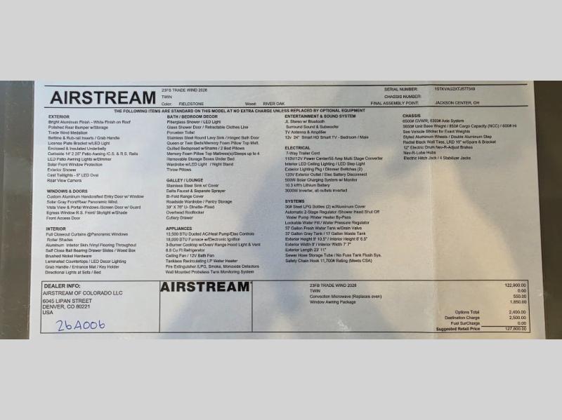New 2026 Airstream Trade Wind 23FB Twin Travel Trailer