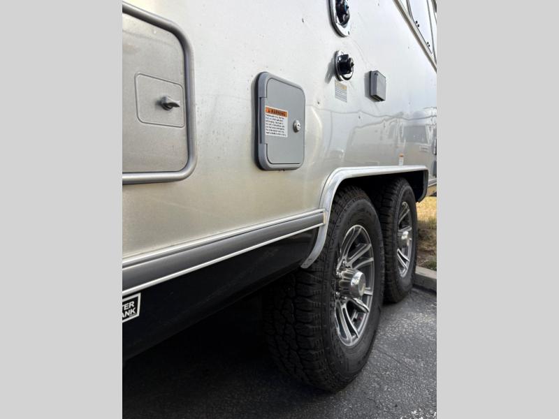 The Trade Wind is Airstream's most powerful travel trailer in its lineup and it's easy to see why! There are roof-mounted solar panels, a full-inverted electrical system, plus a massive internal battery pack. You will love how easy it will be to maneuver roads thanks to the 3" suspension lift kit and rugged Goodyear Wrangler Workhorse tires, plus there is a rear view monitoring system to make parking easier than ever. All the comforts of home are included, like a functional kitchen, onboard bathroom, and plenty of storage for belongings and camp gear. The Smart TVs with Bluetooth will provide entertainment on those rainy days, or you can just enjoy the view with panoramic windows!
