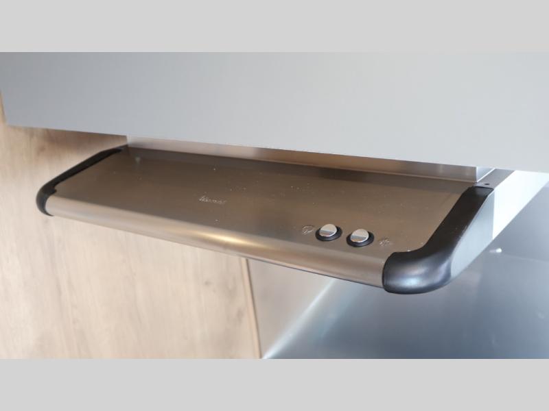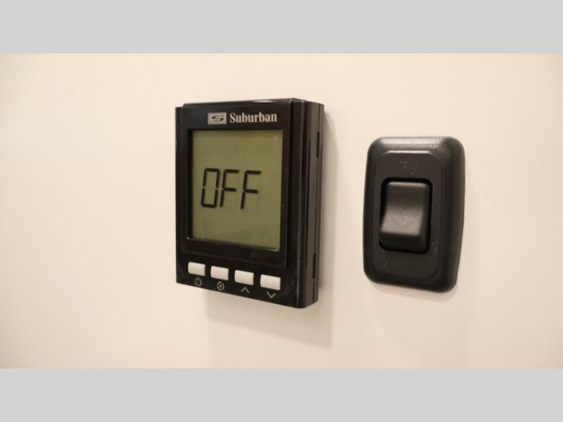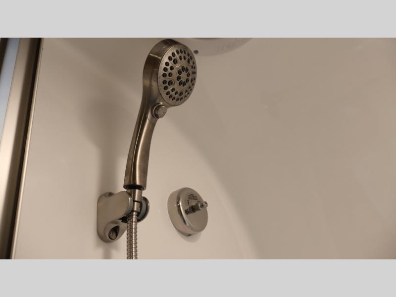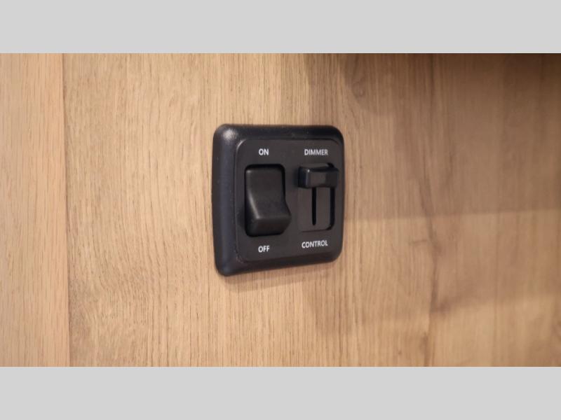 Trade your briefcase for luggage and head for the hills in this travel trailer for five! When you arrive at your destination, you can set up the ZipDee manual patio awning with LED lights, grab the camp chairs from the storage, and relax with a cold drink. There is a private toilet and vanity in a half bath, with the independent shower across the hall so two people can freshen up at once. You'll find plenty of storage throughout this model, including a closet to keep clothes wrinkle-free, underbed storage, plus upper and lower cabinets. The kitchen includes high-end appliances, including a 12V refrigerator, and a three burner stove and oven, or you can choose the optional convection microwave. Your crew can gather at the L-shaped dinette with panoramic views provided by the windows, and your guests can sleep here at night. The optional rear hatch can be added for even more convenience, as well as optional twin beds in place of the queen bed if you choose.