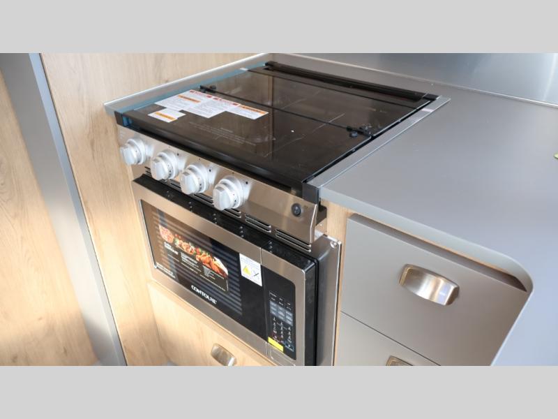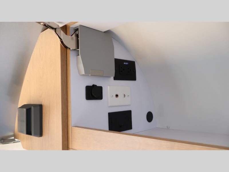 The Trade Wind is Airstream's most powerful travel trailer in its lineup and it's easy to see why! There is a solar charging system with an interior monitor, heated lithium batteries with remote monitoring, plus a massive internal battery pack to keep your adventures going. You will love how easy it will be to maneuver roads thanks to the 3" suspension lift kit and rugged Goodyear Wrangler Workhorse tires, plus there is a rear-view monitoring system to make parking easier than ever. All the comforts of home are included, like a functional kitchen, onboard bathroom, and plenty of storage for belongings and camp gear. The Smart TVs with Bluetooth will provide entertainment on those rainy days, or you can just enjoy the view with panoramic windows!