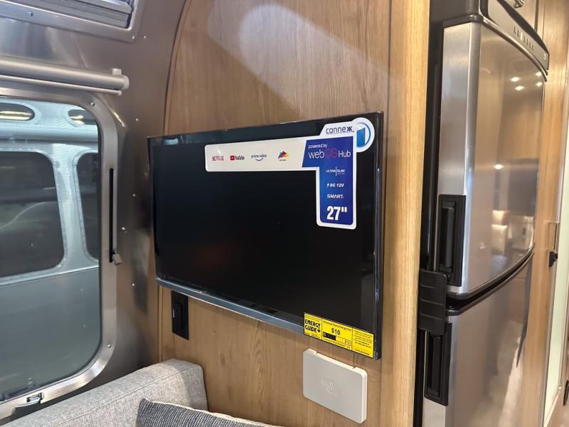 The Trade Wind is Airstream's most powerful travel trailer in its lineup and it's easy to see why! There is a solar charging system with an interior monitor, heated lithium batteries with remote monitoring, plus a massive internal battery pack to keep your adventures going. You will love how easy it will be to maneuver roads thanks to the 3" suspension lift kit and rugged Goodyear Wrangler Workhorse tires, plus there is a rear-view monitoring system to make parking easier than ever. All the comforts of home are included, like a functional kitchen, onboard bathroom, and plenty of storage for belongings and camp gear. The Smart TVs with Bluetooth will provide entertainment on those rainy days, or you can just enjoy the view with panoramic windows!
