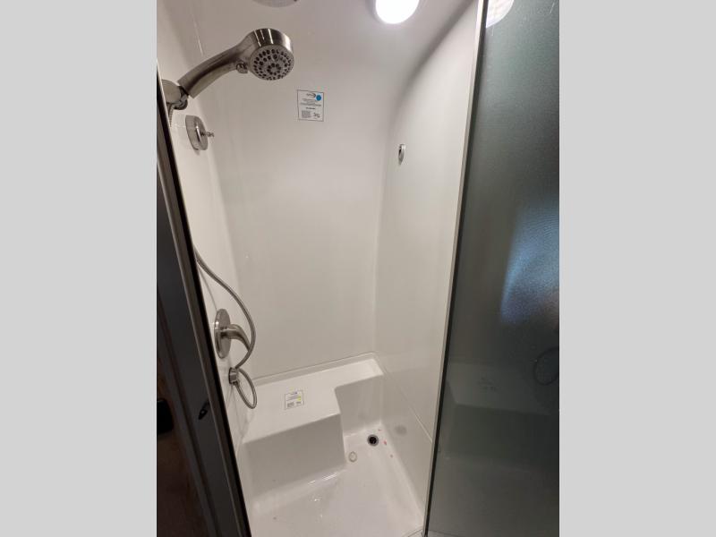 Trade your briefcase for luggage and head for the hills in this travel trailer for five! When you arrive at your destination, you can set up the ZipDee manual patio awning with LED lights, grab the camp chairs from the storage, and relax with a cold drink. There is a private toilet and vanity in a half bath, with the independent shower across the hall so two people can freshen up at once. You'll find plenty of storage throughout this model, including a closet to keep clothes wrinkle-free, underbed storage, plus upper and lower cabinets. The kitchen includes high-end appliances, including a 12V refrigerator, and a three-burner stove and oven, or you can choose the optional convection microwave. Your crew can gather at the L-shaped dinette with panoramic views provided by the windows, and your guests can sleep here at night, while you take the front twin beds.