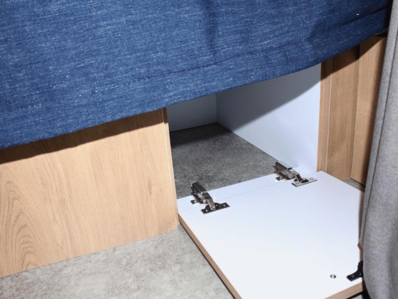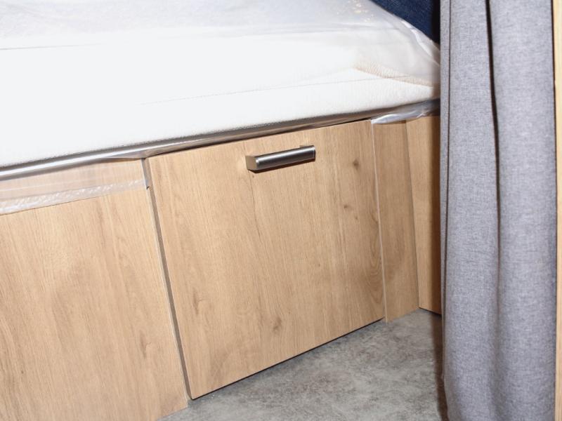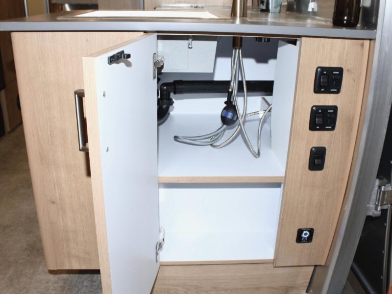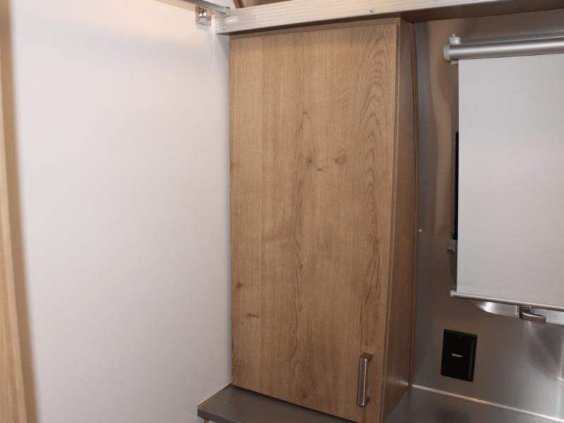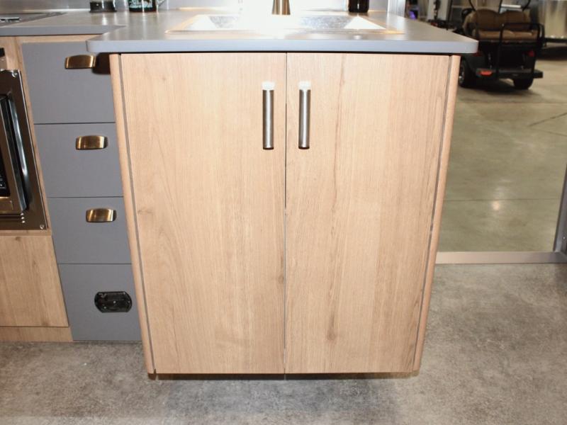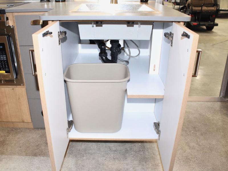 The front bedroom offers a relaxing retreat with a queen bed, generous underbed storage, and a full-height closet to keep clothes organized and wrinkle-free. Prefer flexibility? Opt for the available twin bed configuration or add the optional rear hatch for even easier access to gear and outdoor living.