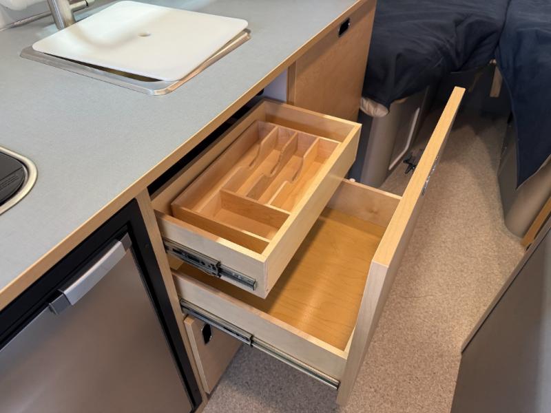 The World Traveler travel trailer by Airstream is your ticket to adventure both near and far! You will enjoy Airstream's timeless design with an aluminum exterior skin, a seamless white aluminum roof, and a semi-monocoque aluminum shell for added durability. There are also acrylic double-glazed windows outside, along with international power outlets, cast-aluminum door hinges, and LED taillights. Inside, you'll love the aluminum paneling, custom-made wood furniture with drawer slides, seamless vinyl flooring, and LED reading lights. There is a stereo system with Bluetooth and two speakers so you can listen to your favorite tunes as you camp, and the optional solar power gives you the ability to go off grid if the adventure calls it.
