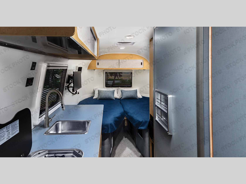 The World Traveler travel trailer by Airstream is your ticket to adventure both near and far! You will enjoy Airstream's timeless design with an aluminum exterior skin, a seamless white aluminum roof, and a semi-monocoque molded fiberglass superstructure for added durability. There are dual-pane acrylic windows outside, along with LED taillights, insulated and heated tanks, plus an exterior shower with hot and cold water. Inside, you'll love the custom wood cabinetry with drawer slides, complete white aluminum walls and ceiling, and laminate galley countertop. There is a JBL Audio stereo with Bluetooth and two speakers so you can listen to your favorite tunes as you camp, and the optional solar charging system gives you the ability to go off grid if the adventure calls it.