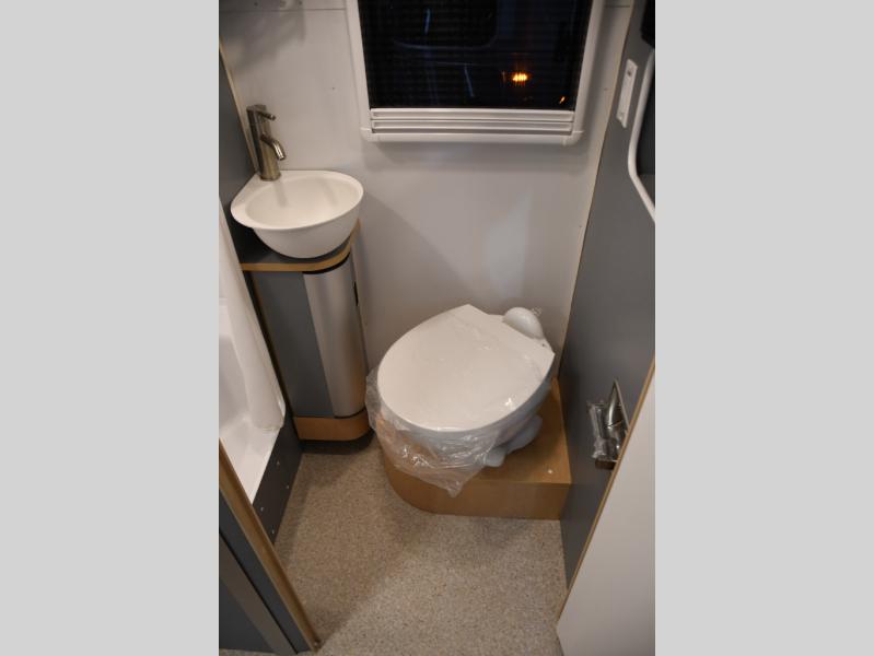 The front queen bed offers a comfortable retreat at the end of the day, complete with thoughtful storage options to keep your belongings organized and out of sight. The rear corner bathroom is spacious and well-appointed, providing privacy and convenience for longer trips.