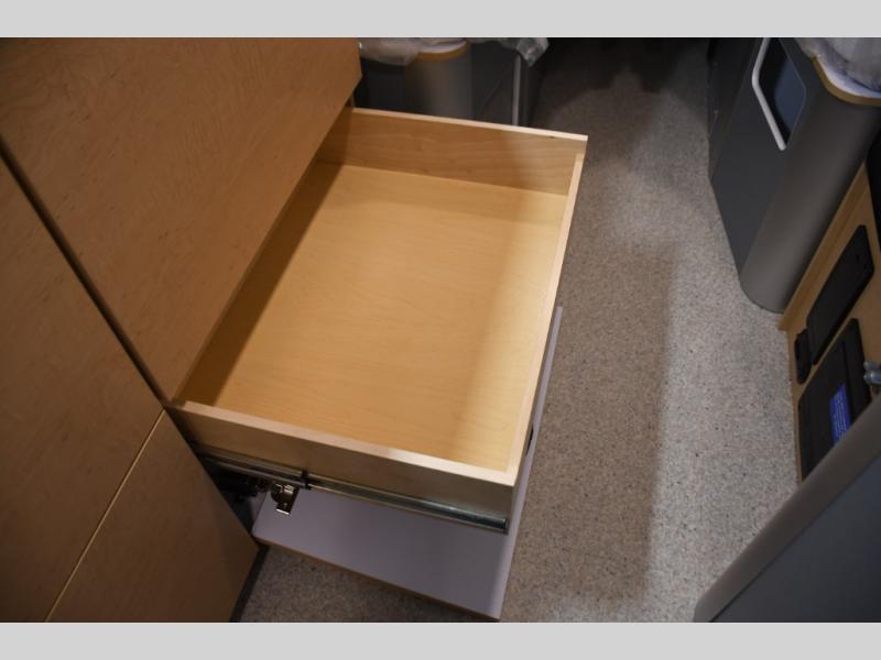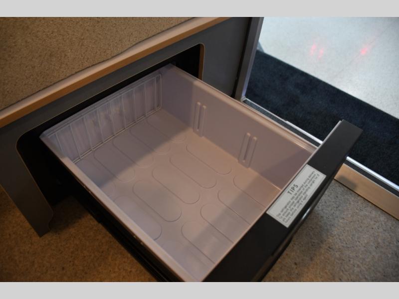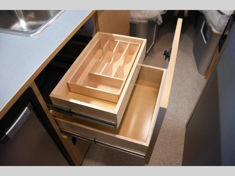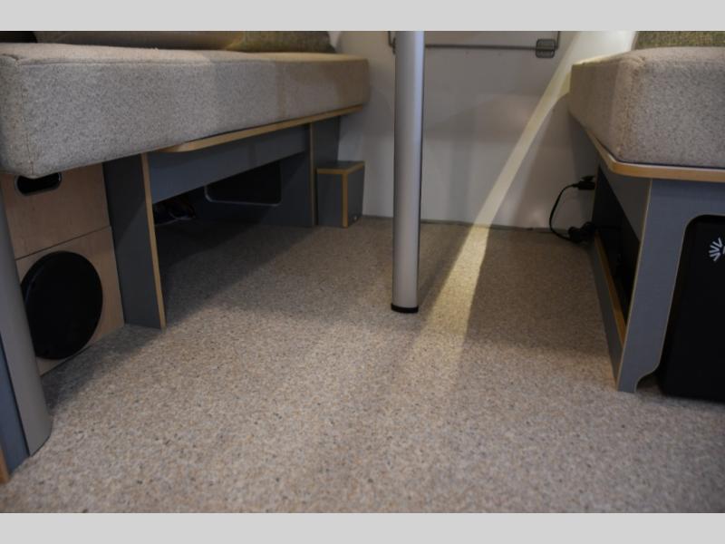The galley kitchen features quality appliances, durable countertops, and very efficient storage solutions that make meal preparation on the road simple and practical. The seating and dining area is designed for flexibility — perfect for enjoying meals, planning your next adventure, or relaxing after a day of exploration.