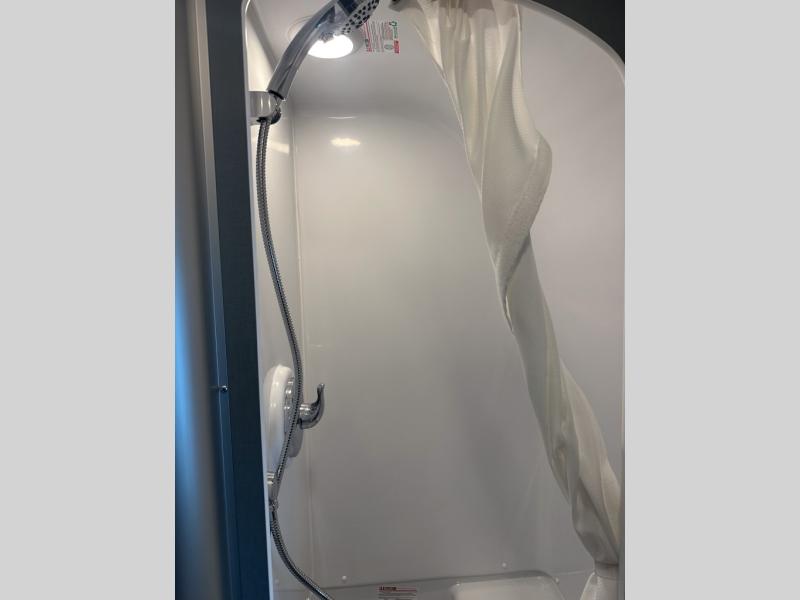 Adventure awaits in this travel trailer for four campers! Once you arrive at your destination, you can make a quick lunch in the kitchen, then dine at the convertible dinette. The middle bath includes everything you need to freshen up each day, and the wardrobe between the bath and rear beds will help you keep your things tidy. The V-nose twin beds include a memory foam mattress for added comfort, plus there is storage under the bed to store your bags away.
