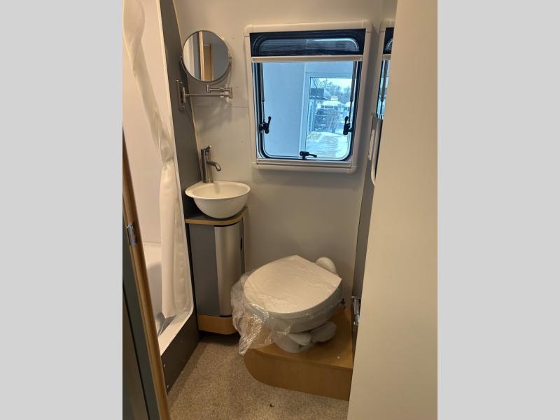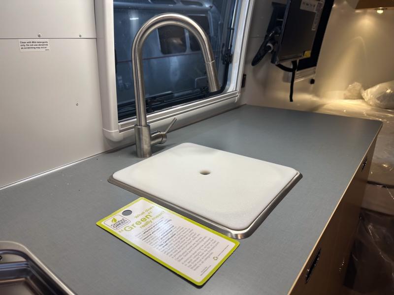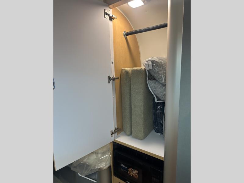 The World Traveler travel trailer by Airstream is your ticket to adventure both near and far! You will enjoy Airstream's timeless design with an aluminum exterior skin, a seamless white aluminum roof, and a semi-monocoque molded fiberglass superstructure for added durability. There are dual-pane acrylic windows outside, along with LED taillights, insulated and heated tanks, plus an exterior shower with hot and cold water. Inside, you'll love the custom wood cabinetry with drawer slides, complete white aluminum walls and ceiling, and laminate galley countertop. There is a JBL Audio stereo with Bluetooth and two speakers so you can listen to your favorite tunes as you camp, and the optional solar charging system gives you the ability to go off grid if the adventure calls it.