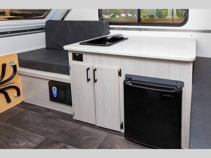 There comes a time in life when you simply can no longer sleep on the ground. Enter the Aliner Scout Lite, the Aliners for traditional tent campers who want or need more than a tent. The lightest pop up camper, the Scout Lite offers the essential amenities as well as quality construction, affordability, and ample storage space for all your gear. With a roof over your head and a nice soft bed to sleep on, you’ll find the Scout Lite is the perfect platform from which to launch all your outdoor adventures.