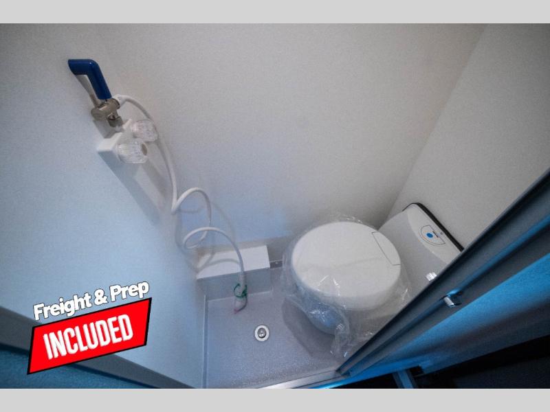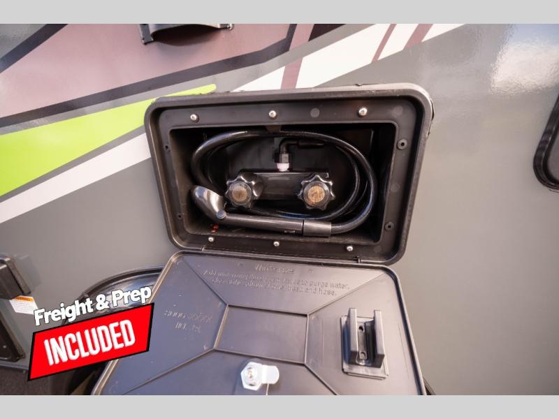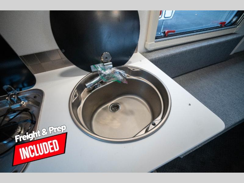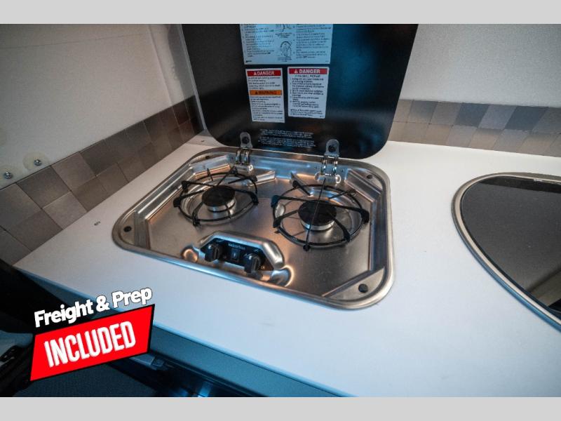Your time at the campground will be complete with this lightweight travel trailer. There are two dinette seats with a table to dine, relax, and convert to a 77" x 72" bed size when you're ready for bed. You won't have to use the camp's facilities thanks to the wet bath with an enclosed shower and toilet combination plus a shower door for privacy. This model includes a two burner cooktop, a sink, plus a 3.0 cu. ft. two-way refrigerator under the range to store your perishables.