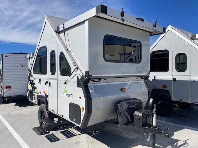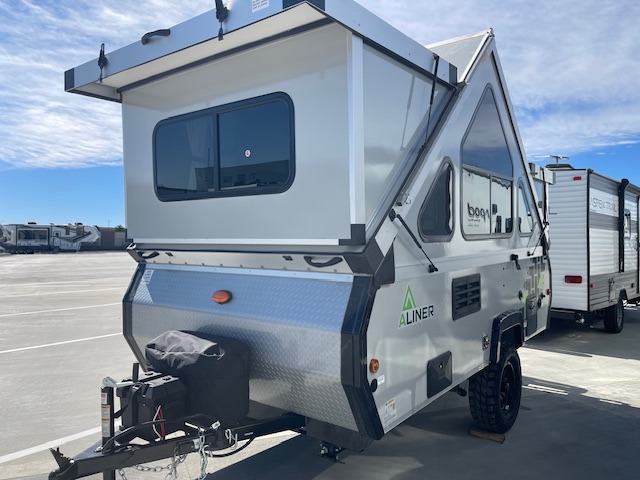 With any Aliner Classic A-frame camper you will find vacuum bonded wall construction and a high wind lift assist for added strength. The gray fiberglass exterior is eye-catching, and the Dexter rubber torsion axle will provide smooth towing. There are also two exterior baggage doors, a bike rack receiver, four stabilizer jacks, and an optional 200-watt solar panel for off-grid capabilities. Inside, you'll enjoy the LED lights, electric outlets, plus a water heater and 18,000 BTU furnace for added comfort! It's no wonder these campers are named classic! Choose your model and start camping today!