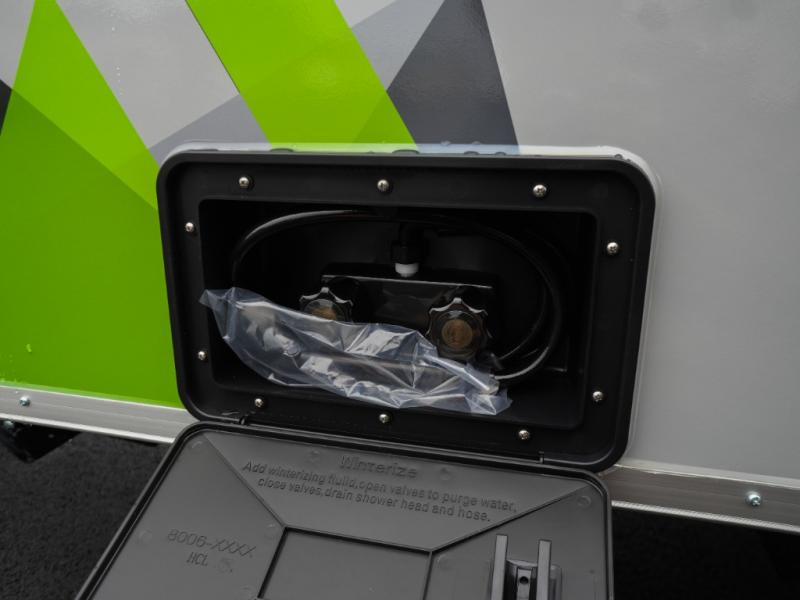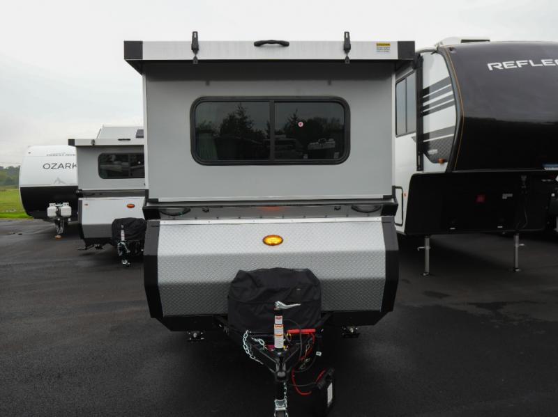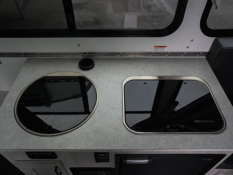 Camping has never been easier than in this A-frame camper. Once you arrive at your destination, grab your gear from the two exterior baggage doors, then head inside to make lunch on the two burner stove top. The sofa bed can convert to a 60" x 76" bed, and the dinette converts to a 46" x 76" bed for comfortable sleeping space at night. You will also enjoy LED interior lights and electrical outlets to keep you charged up, and there is plenty of storage for your camp gear.