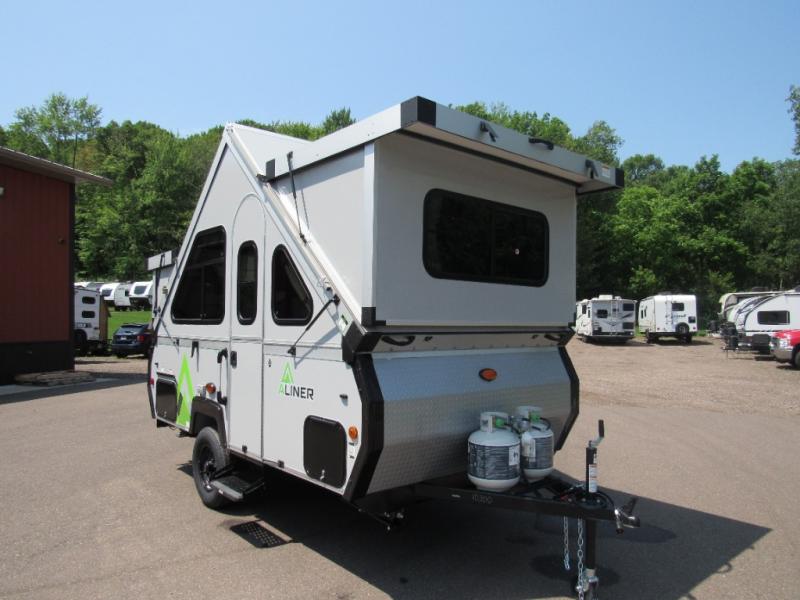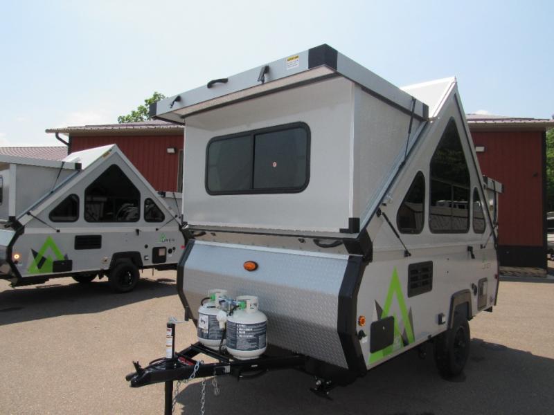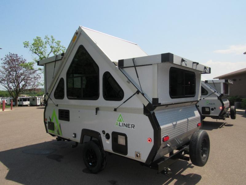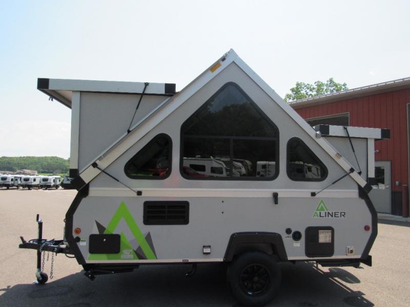 With any Aliner Classic A-frame folding pop-up camper you will find Azdel lightweight, composite interior wall and ceiling panels for added durability and strength. The additional corner windows provide panoramic views, and the hardwood cabinet doors will give these campers a more at-home feel. Four stabilizer jacks come standard, along with an LP connection, an exterior outlet, and an outside shower. It's no wonder these campers are named classic! Choose your model and start camping today!