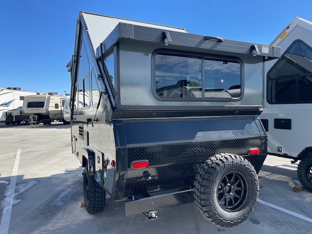 The Evolution A-frame camper by Aliner is coming to you with residential features and solid construction materials. You'll find a slate gray fiberglass exterior, aluminum wheels, and a high wind lift assist for added strength. There are also LED running lights, exterior baggage doors, and four stabilizer jacks to help keep your camper secure. You will also appreciate the keyless entry, dual LP tanks with a cover, and the 200-watt solar panel on the front dormer for some off-grid power. The lift kit and 15" off-road tires add 3" to the height, allowing you to explore more roads, and you'll find many interior comforts to make you feel right at home!