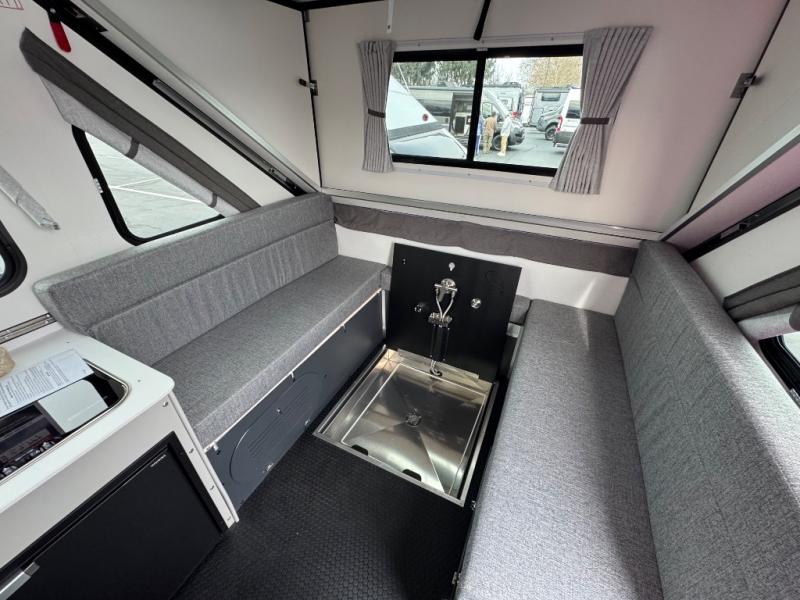 18ft total equipped with indoor outdoor shower , dual queen beds , dual hard dormers , 9000 Btu ac with heat pump , lp furnace , sleeps 4, tankless water heater and cassette toilet , all folds down for aerodynamics! Also 190 watts solar panel on front dormer !