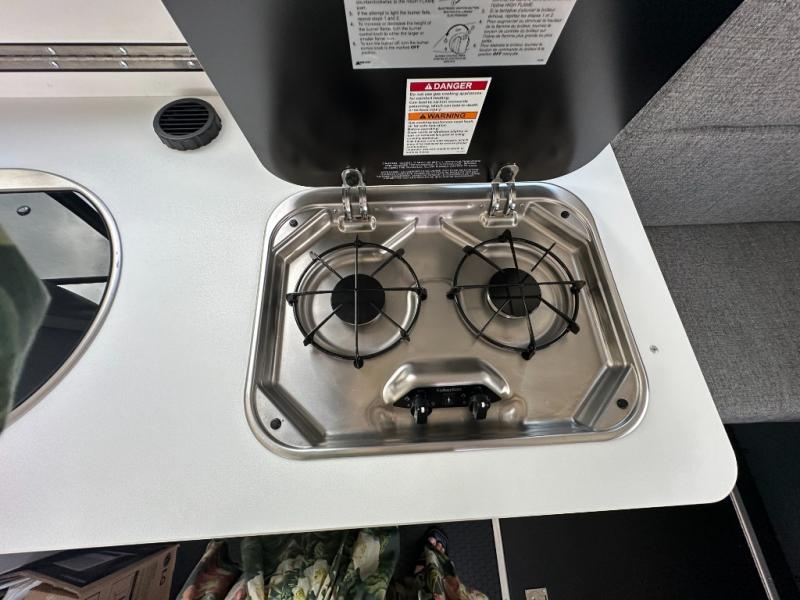 Two to four, depending on size can easily camp in this twin bed model featuring two 30" x 80" twin beds in the rear of the unit. There is a two burner cooktop to make lunch on and a 3.0 cu. ft. 3-way refrigerator with a freezer for your cold items, and you can add the optional outside grill if you like to cook outdoors! The dinette converts to a 40" x 80" bed for one or two more tired campers. You'll find storage space under the dinette for your things and the cassette toilet is quite handy especially at night. This model also has a dry weight of 2,400 lbs. for easy towing!