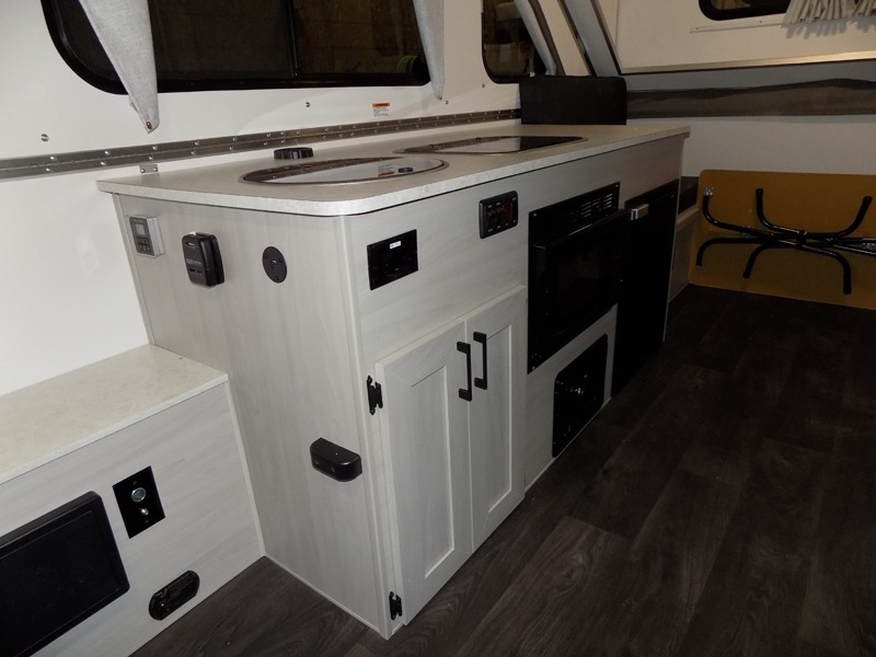 Each Expedition A-frame camper by Aliner is constructed with Azdel composite roof/sidewalls, a Dexter rubber torsion axle, aluminum wheels, and a high wind lift assist. Additional exterior features include LED lighting, four stabilizer jacks, three baggage doors, and an outside LP connection if you want to bring along your grill. Inside, the LED lights will keep your space well lit, and there are three electrical outlets to charge your phone or laptop. The optional dormers (front or rear) will give you the ability to add more head room when camping, and you can add an optional 200-watt solar panel to either dormer for off-grid capabilities!