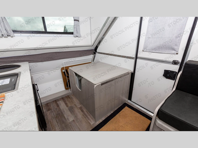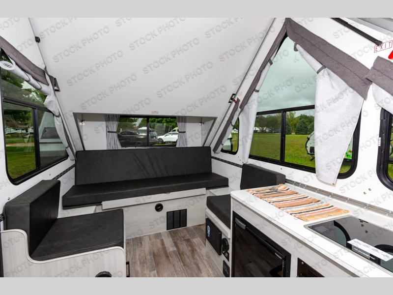 Versatile, comfortable, and convenient indoor living while camping can be found throughout this camper! The shower with a cassette toilet offers convenience and a place to clean up each morning, the 3.1 cu. ft. 12V refrigerator offers cold storage, and the microwave plus two burner stove allows you to make warm meals. Eat your meals while sitting on the sofa bed or at the dinette with two seats. And the sofa bed converts into an 74" x 76" bed for a great night's rest!