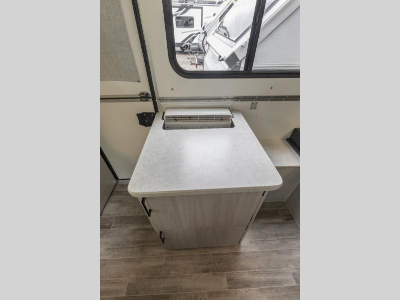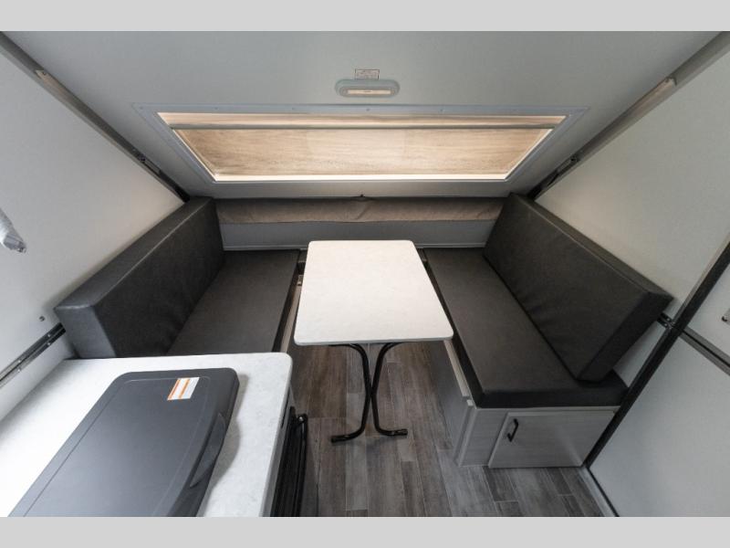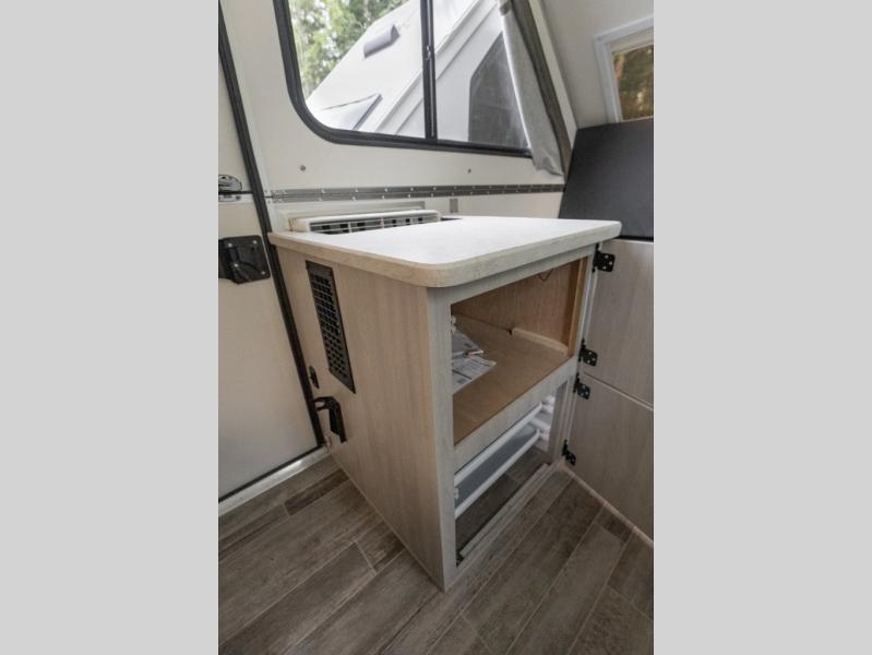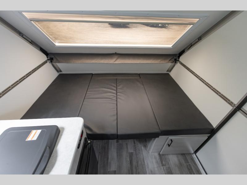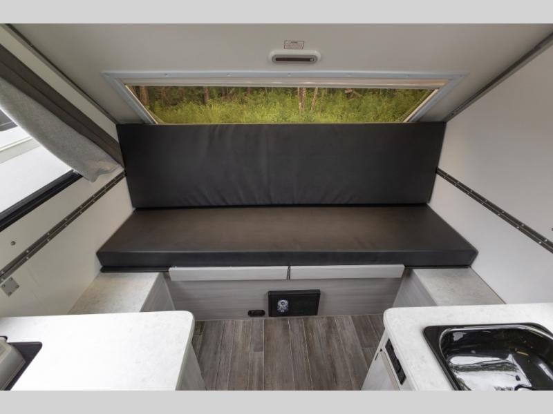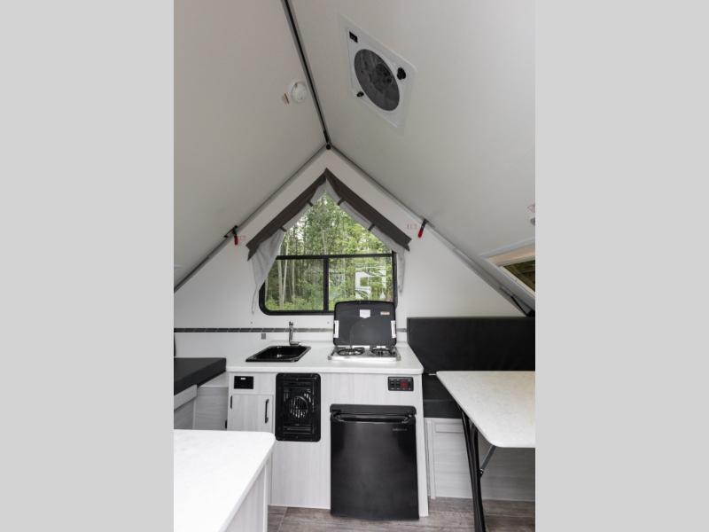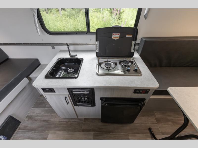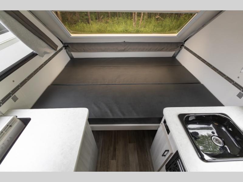 Looking for a camper that you can relax and unwind inside when you aren't exploring outdoors? Need sleeping space for two or three? Well the rear sofa bed in this camper converts into a 56" x 76" bed and the front dinette converts into a 46" x 76" bed. You can prepare delicious meals with the two burner stove, clean up with the sink, and keep your perishables fresh within the 1.7 cu. ft. 12V refrigerator underneath the stove and sink. You might even like to add an optional soft or hard dormer to the front or rear of this unit, and/or the optional Off Road package.