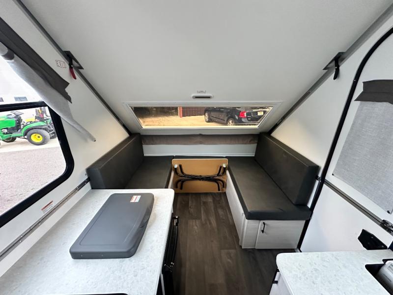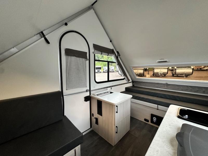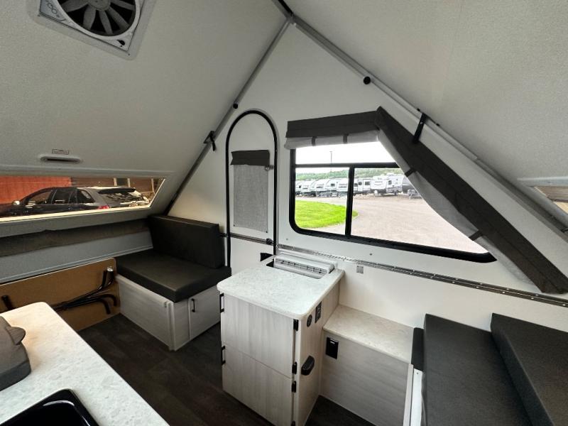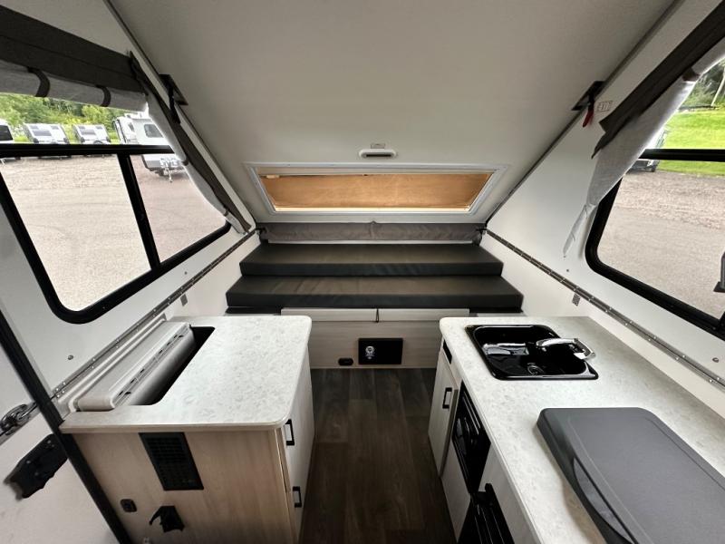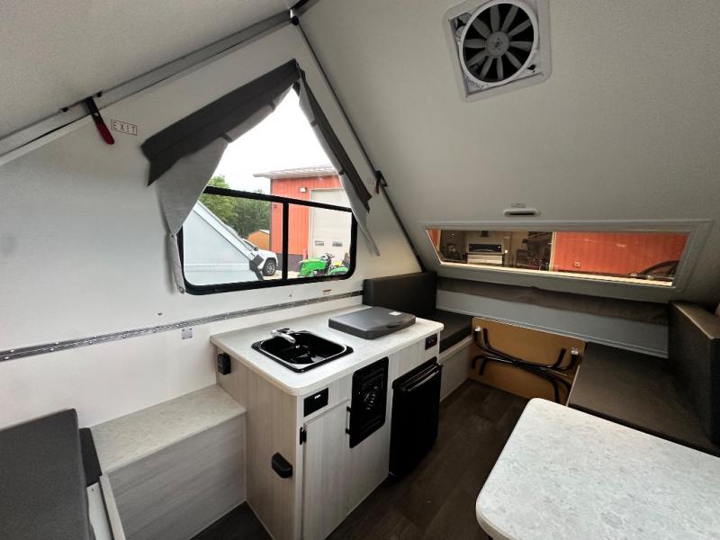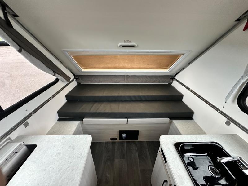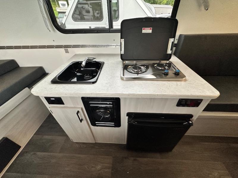 Looking for a camper that you can relax and unwind inside when you aren't exploring outdoors? Need sleeping space for two or three? Well the rear sofa bed in this camper converts into a 56" x 76" bed and the front dinette converts into a 46" x 76" bed. You can prepare delicious meals with the two burner stove, clean up with the sink, and keep your perishables fresh within the 1.7 cu. ft. 12V refrigerator underneath the stove and sink. You might even like to add an optional soft or hard dormer to the front or rear of this unit, and/or the optional Off Road package.