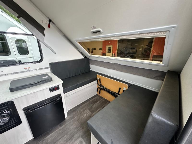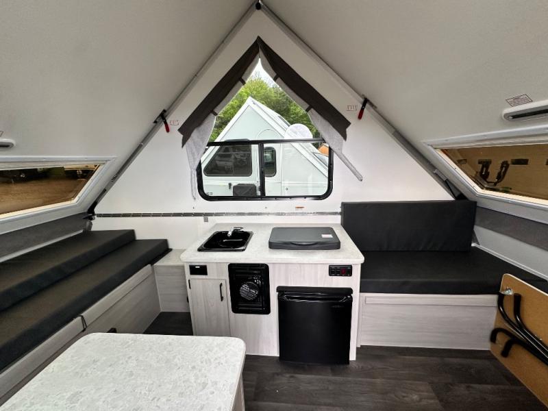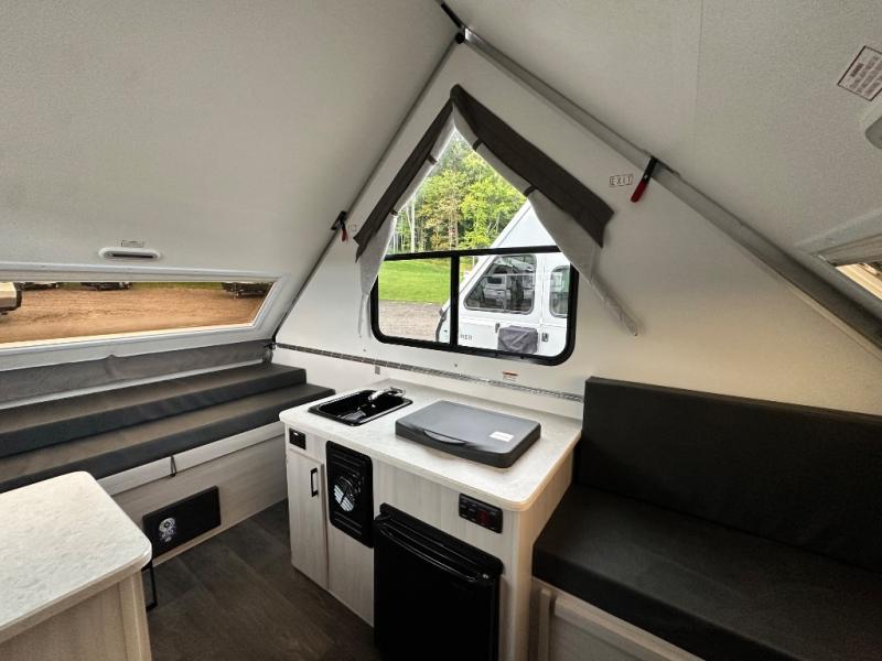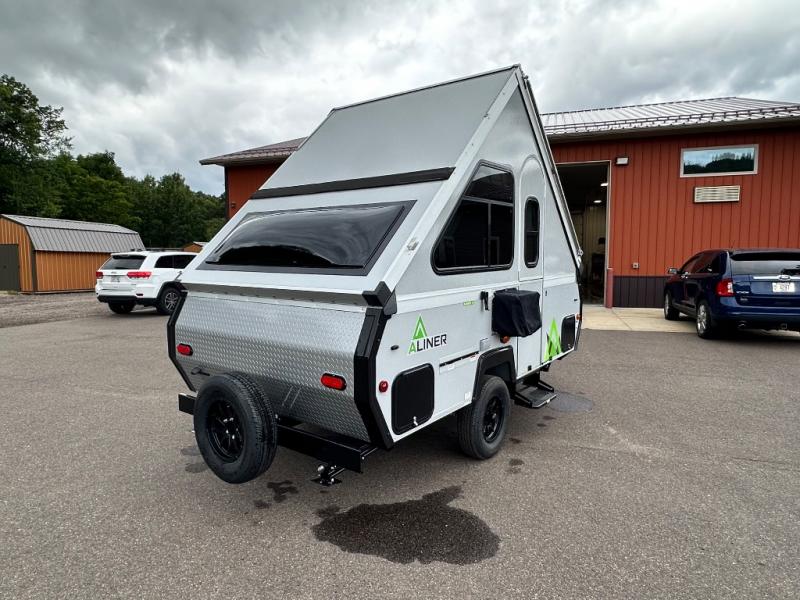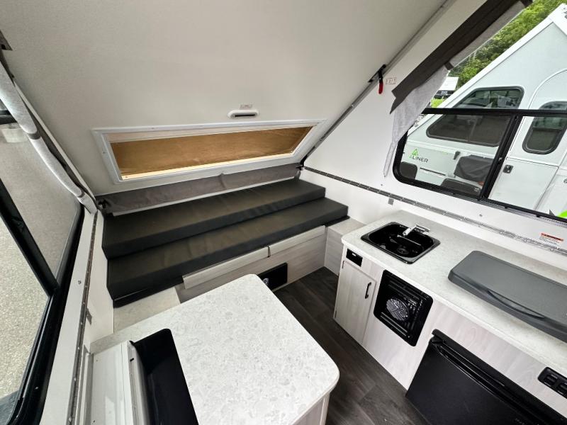 With any Ranger A-frame camper by Aliner, the construction includes Azdel composite roof/sidewalls for added durability, plus a Dexter rubber torsion axle for smooth towing. Inside, there is high density foam, hypoallergenic cushions and mattresses, a 12 Volt refrigerator, electrical outlets, and LED lights to keep your space well lit. You are sure to appreciate the high wind lift assist, dual tanks with a cover, and the furnace to keep you warm during the cooler camping months. There are also available options to choose from that will let you further customize your trailer, such as the front dormer, 6,000 BTU A/C, and more depending on the model you choose!