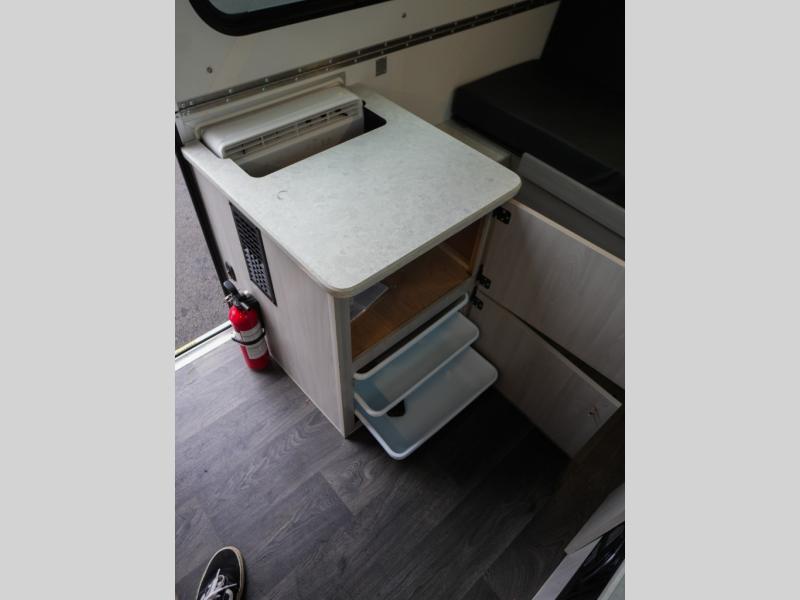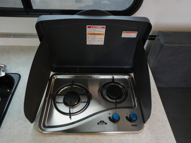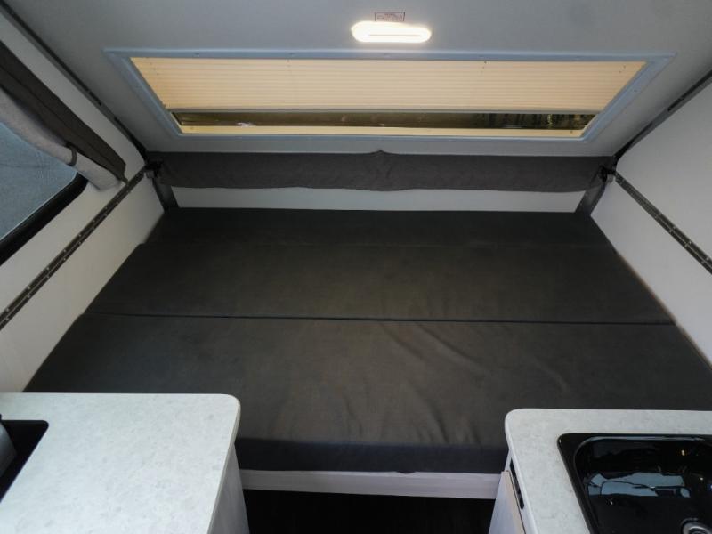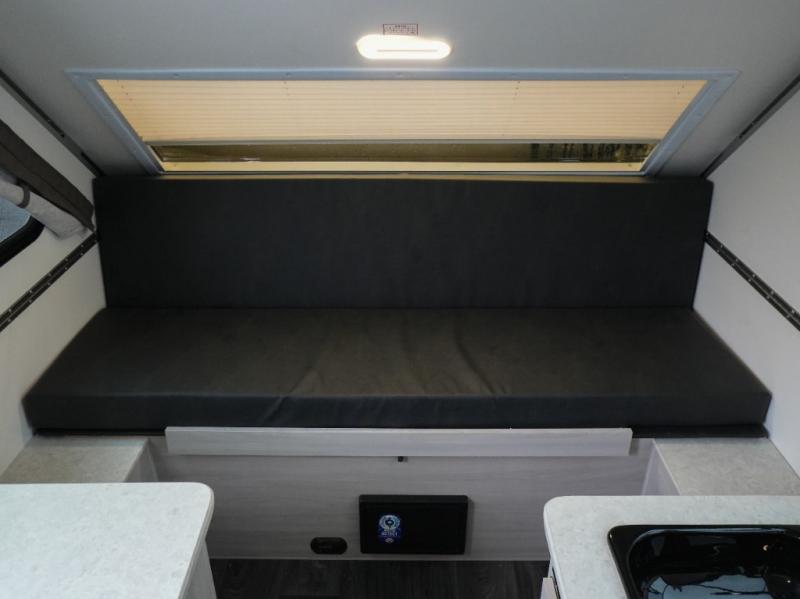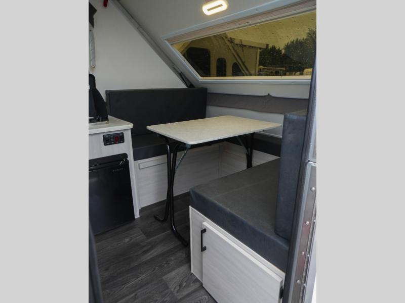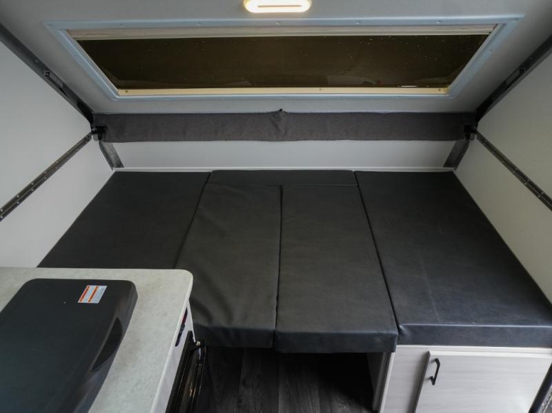Looking for a camper that you can relax and unwind inside when you aren't exploring outdoors? Need sleeping space for two or three? Well the rear sofa bed in this camper converts into a 56" x 76" bed and the front dinette converts into a 46" x 76" bed. You can prepare delicious meals with the two burner stove, clean up with the sink, and keep your perishables fresh within the 1.7 cu. ft. 12V refrigerator underneath the stove and sink. You might even like to add an optional soft or hard dormer to the front or rear of this unit, and/or the optional Off Road package.