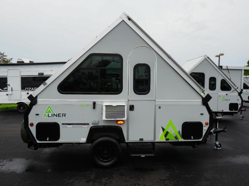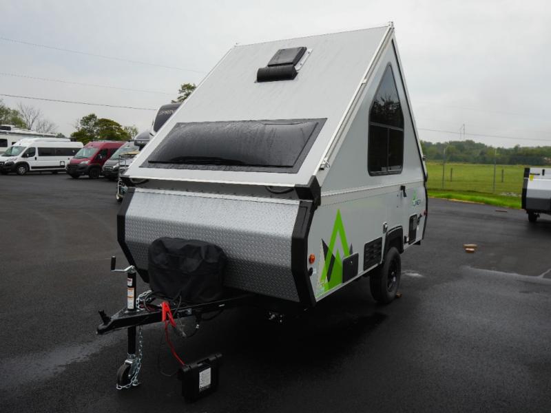 With any Ranger A-frame camper by Aliner, the construction includes Azdel composite roof/sidewalls for added durability, plus a Dexter rubber torsion axle for smooth towing. Inside, there is high density foam, hypoallergenic cushions and mattresses, a 12 Volt refrigerator, electrical outlets, and LED lights to keep your space well lit. You are sure to appreciate the high wind lift assist, dual tanks with a cover, and the furnace to keep you warm during the cooler camping months. There are also available options to choose from that will let you further customize your trailer, such as the front dormer, 6,000 BTU A/C, and more depending on the model you choose!