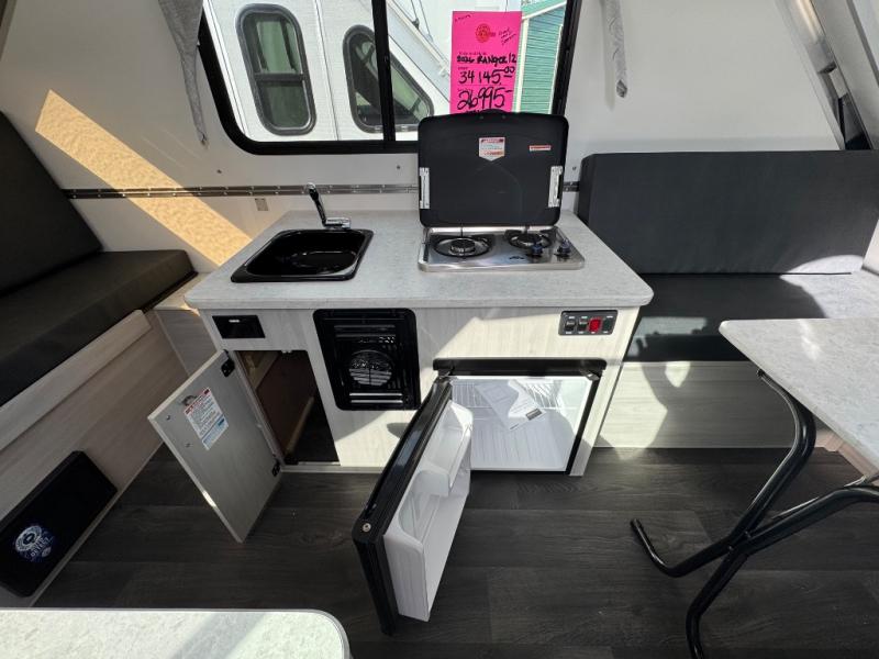WINTER SPECIAL ! ONLY 1800 lbs !The 2026 Aliner Ranger 12 is a compact, lightweight A-frame pop-up camper designed for ease of use and transport, featuring a fold-down design for 30-second setup, sleeping for two to three, a 2-burner stove, a 12V refrigerator/freezer, fresh water storage, an outside shower, a furnace, and options for dormers and an off-road package. Its smaller size and lighter frame make it ideal for campers seeking adventure without complication, as it can be towed by an average car and fits in most home garages