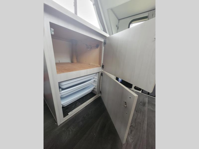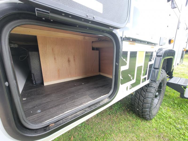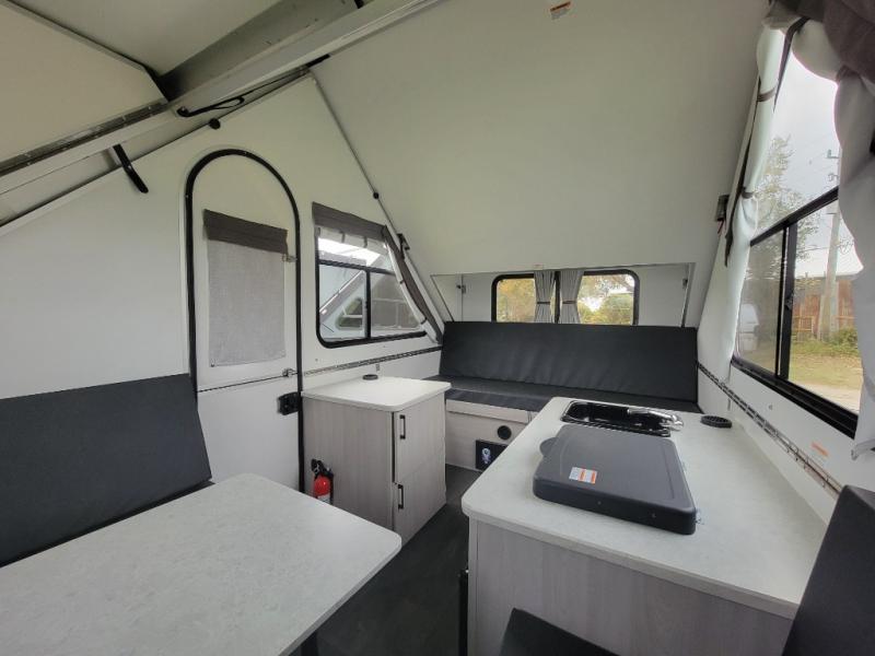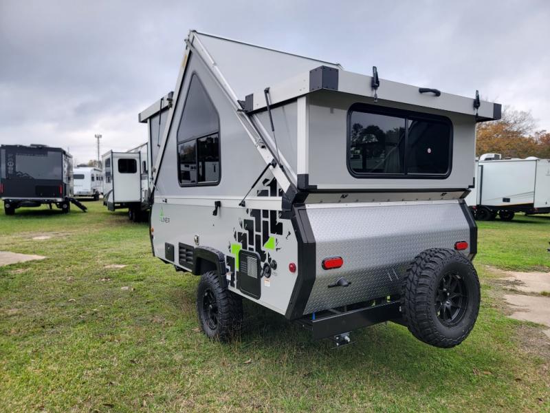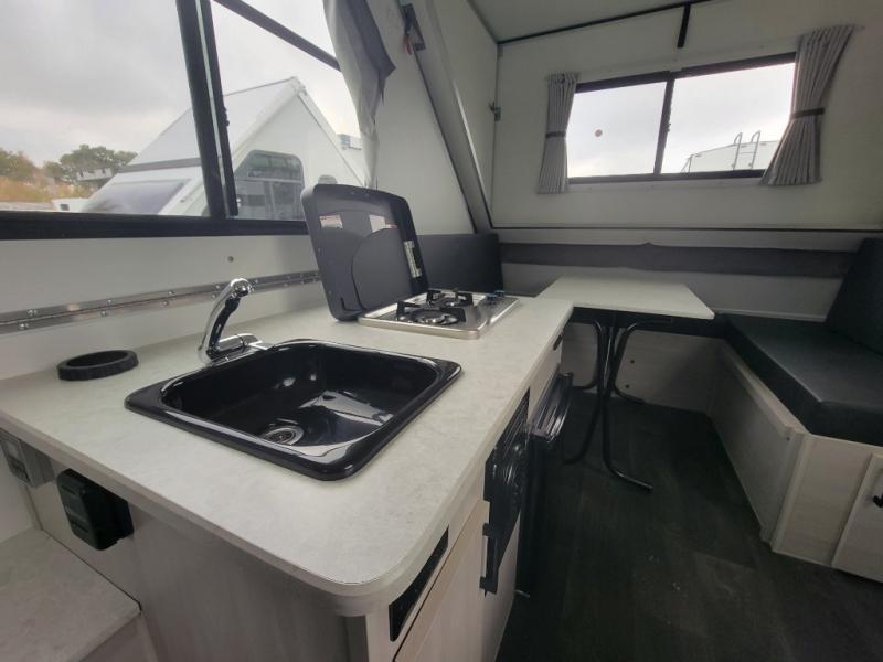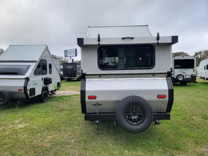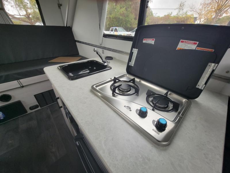 Looking for a camper that you can relax and unwind inside when you aren't exploring outdoors? Need sleeping space for two or three? Well the rear sofa bed in this camper converts into a 56" x 76" bed and the front dinette converts into a 46" x 76" bed. You can prepare delicious meals with the two burner stove, clean up with the sink, and keep your perishables fresh within the 1.7 cu. ft. 12V refrigerator underneath the stove and sink. You might even like to add an optional soft or hard dormer to the front or rear of this unit, and/or the optional Off Road package.
